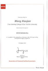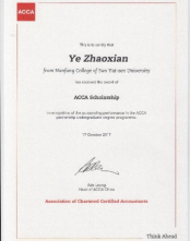 ACCA方向班学生获得ACCA官方颁发的专项奖学金(部分展示)