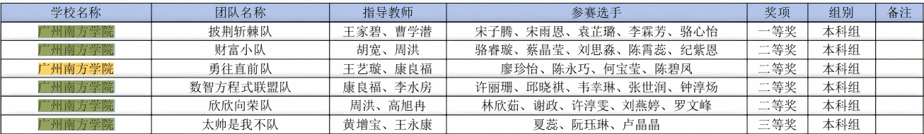 太阳成集团tyc7111宋子腾、宋雨恩、袁芷璐、李霖芳、骆心怡五名同学组成参赛队伍——“披荆斩棘队”,在王家碧、曹学潜老师指导下,荣获本次竞赛全国一等奖;胡宽和周洪老师指导的“财富小队”、王艺璇和康良福老师指导的“勇往直前队”、康良福和李水房指导的“数智方程式联盟队” 荣获本次竞赛全国二等奖;周洪和高旭冉老师指导的“欣欣向荣队”、黄增宝和王永康老师指导的“太帅是我不队” 荣获本次竞赛全国三等奖。