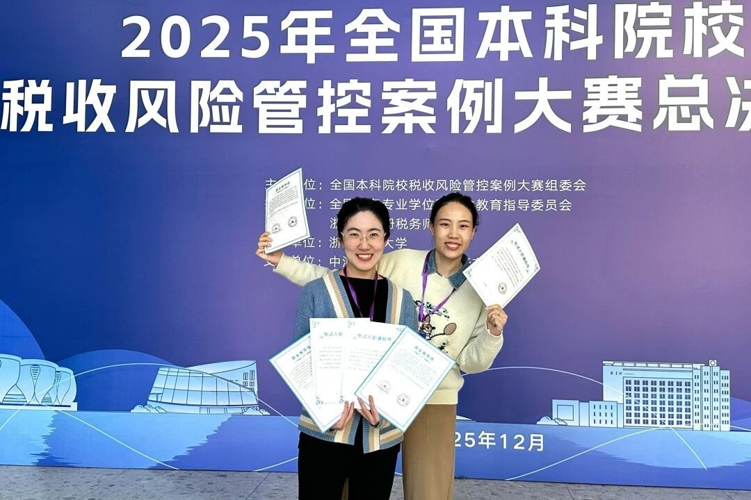近日,由我校太阳成集团tyc7111教师由姚懿轩、高旭冉老师指导的宋雨恩、陈都、袁芷璐三位同学在2025年全国本科院校税收风险管控案例大赛全国总决赛中表现优异,荣获全国总决赛三等奖。