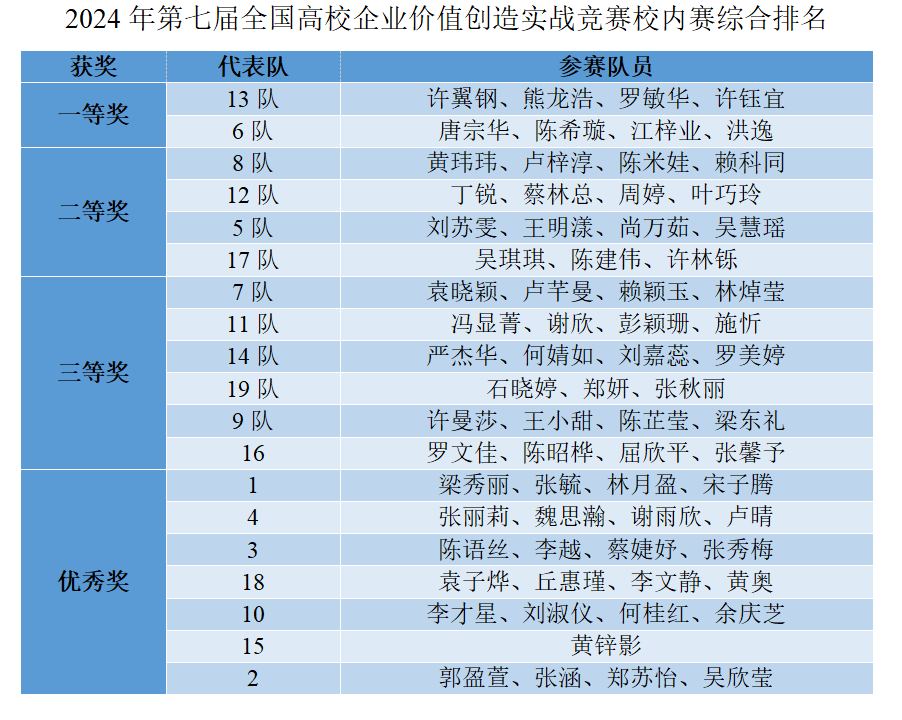 至此,第七届全国高校企业价值创造实战竞赛校内赛圆满结束。让我们一起祝愿和期待本次获得一等奖的团队能在全国选拔赛中再接再厉,为我校取得优异成绩!