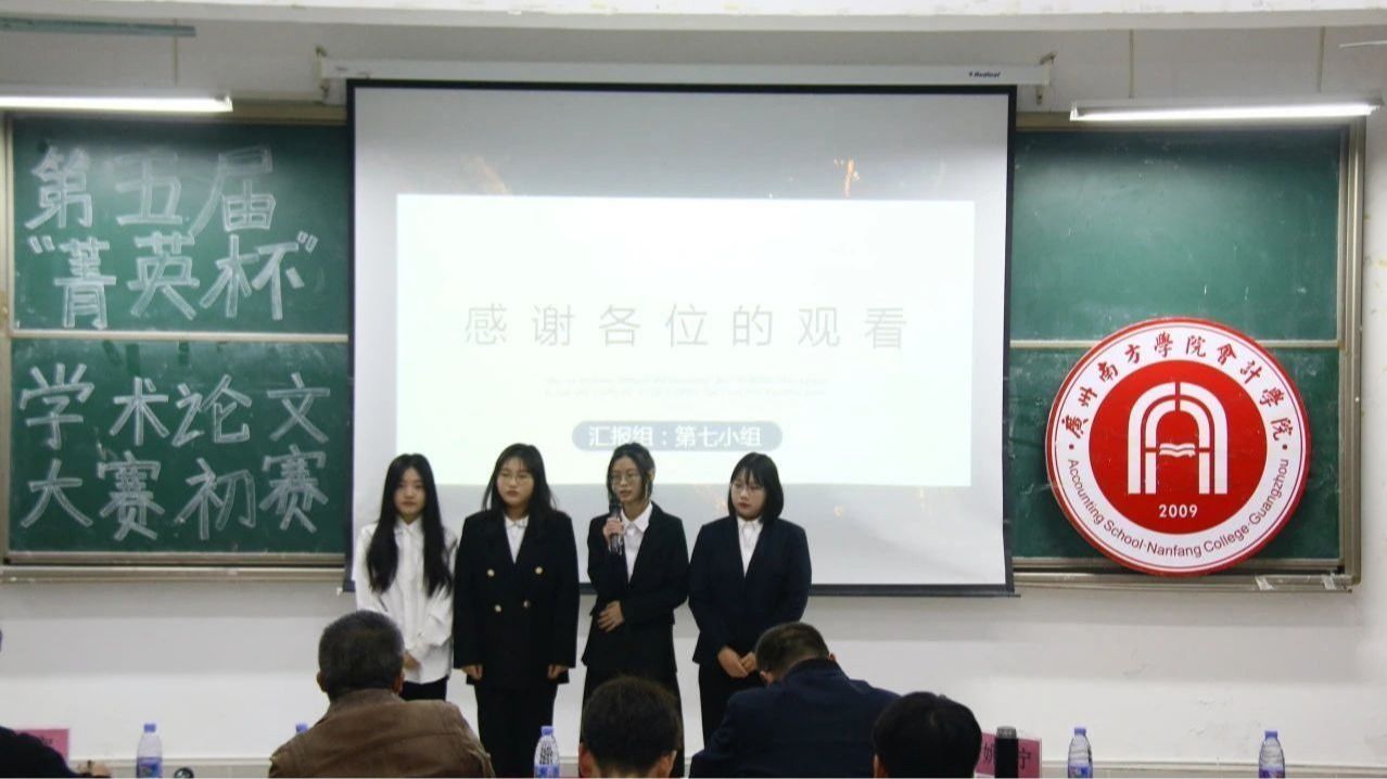 本次大赛分为“财会+金融”和“财会+互联网”两个赛道,各小组围绕当下热点话题将他们的研究课题分为研究目的及意义、设计思路及方法、研究内容及分析、创新点、预期结果的假设、研究进度规划六个板块,以PPT展示的形式上台汇报。