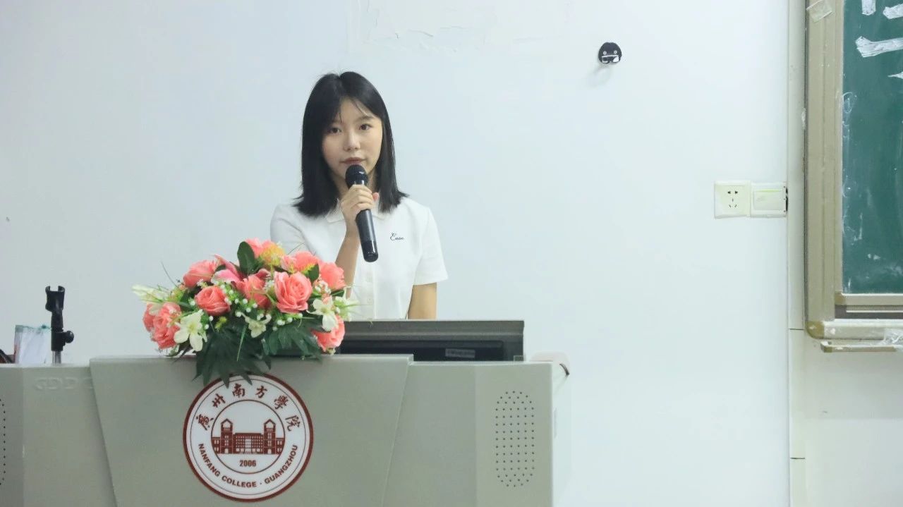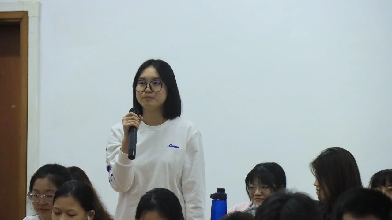 随后,第五届“菁英杯”学术论文大赛获奖小组代表梁嘉谕同学分享了她的参赛心得与经验。梁嘉谕同学从时间管理、个人职责、所获成果三大方面娓娓道来,说明了专业知识、组织力、总结力及团队合作的重要性。她的分享不仅为在座同学提供了切实可行的指导,也激发了大家对未来学术探索的热情与动力。