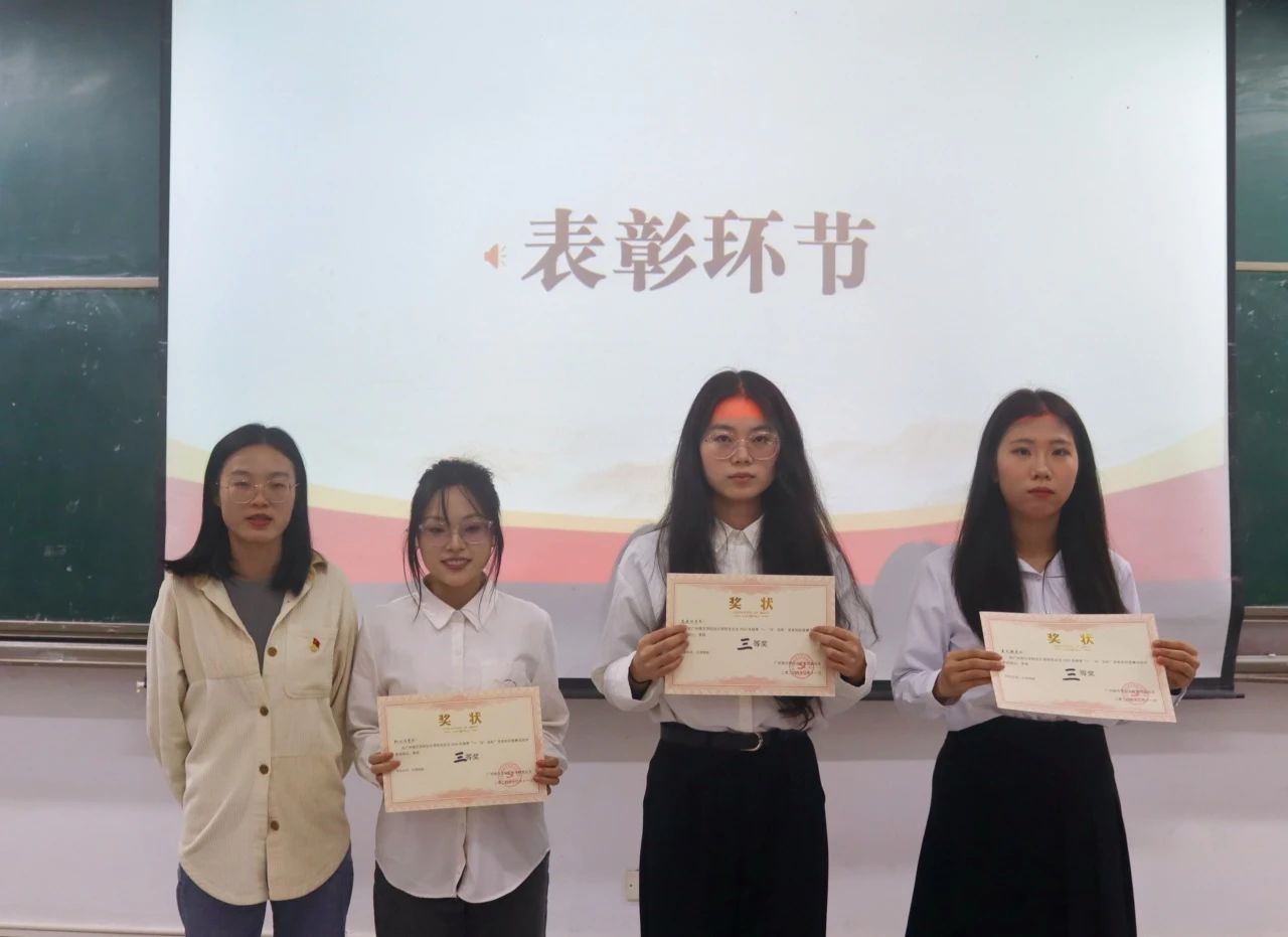 本次比赛,荣获一等奖的是逐梦前行队,荣获二等奖的是青年先锋队、鹏程万里队,荣获三等奖的是志在四方队、星火燎原队、红心向党队,分别由邓晓文老师、陈情文老师、王力群老师为以上获奖队伍进行颁奖。