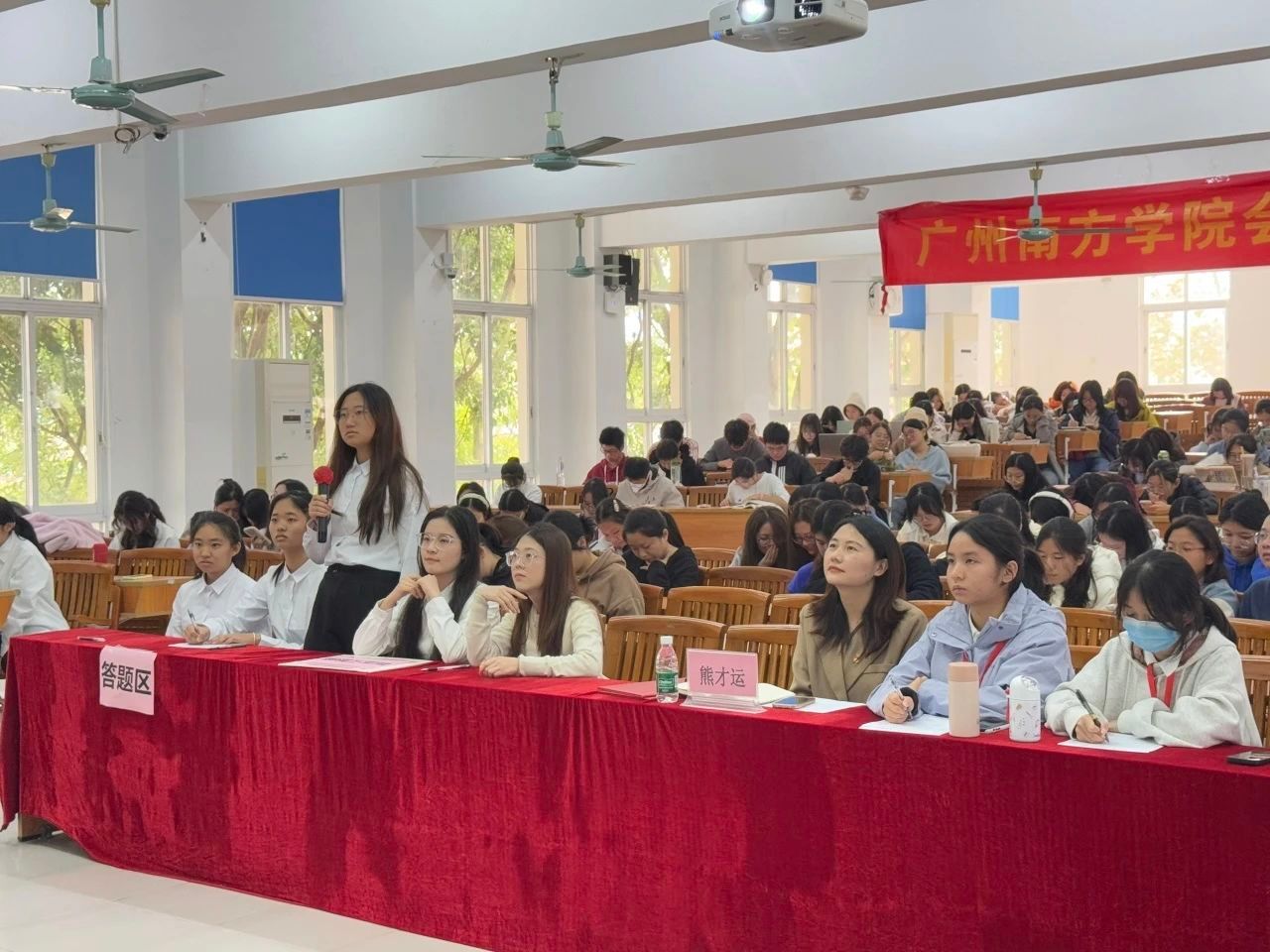 比赛第三部分是“微言百年路”微党课比赛。各队代表依序上台,声情并茂地讲述着革命故事。此环节中,观众也参与评分,与评委老师共评参赛队伍演讲表演,为党史知识竞赛增添了亮点。