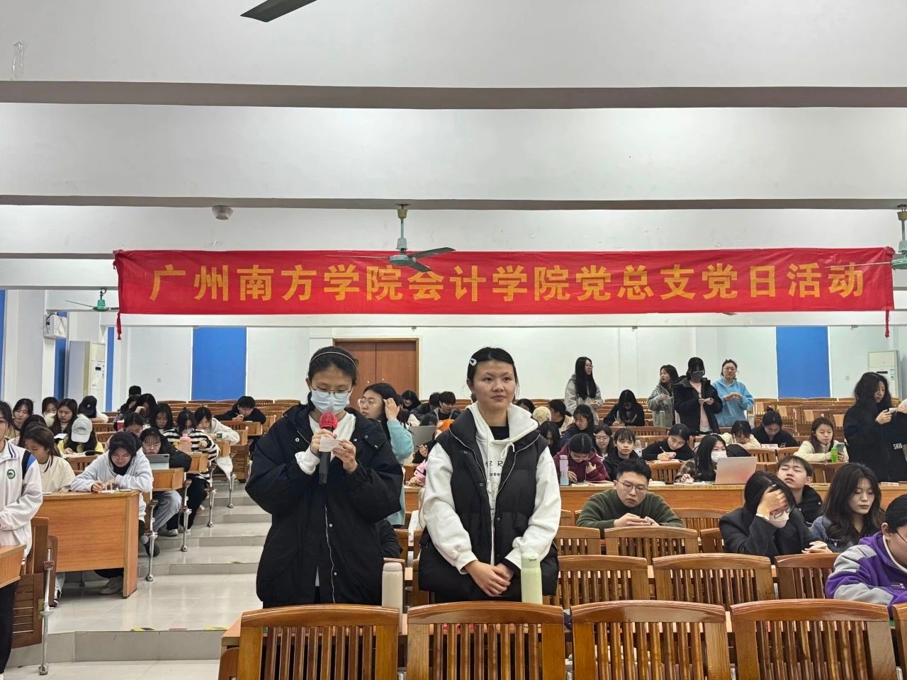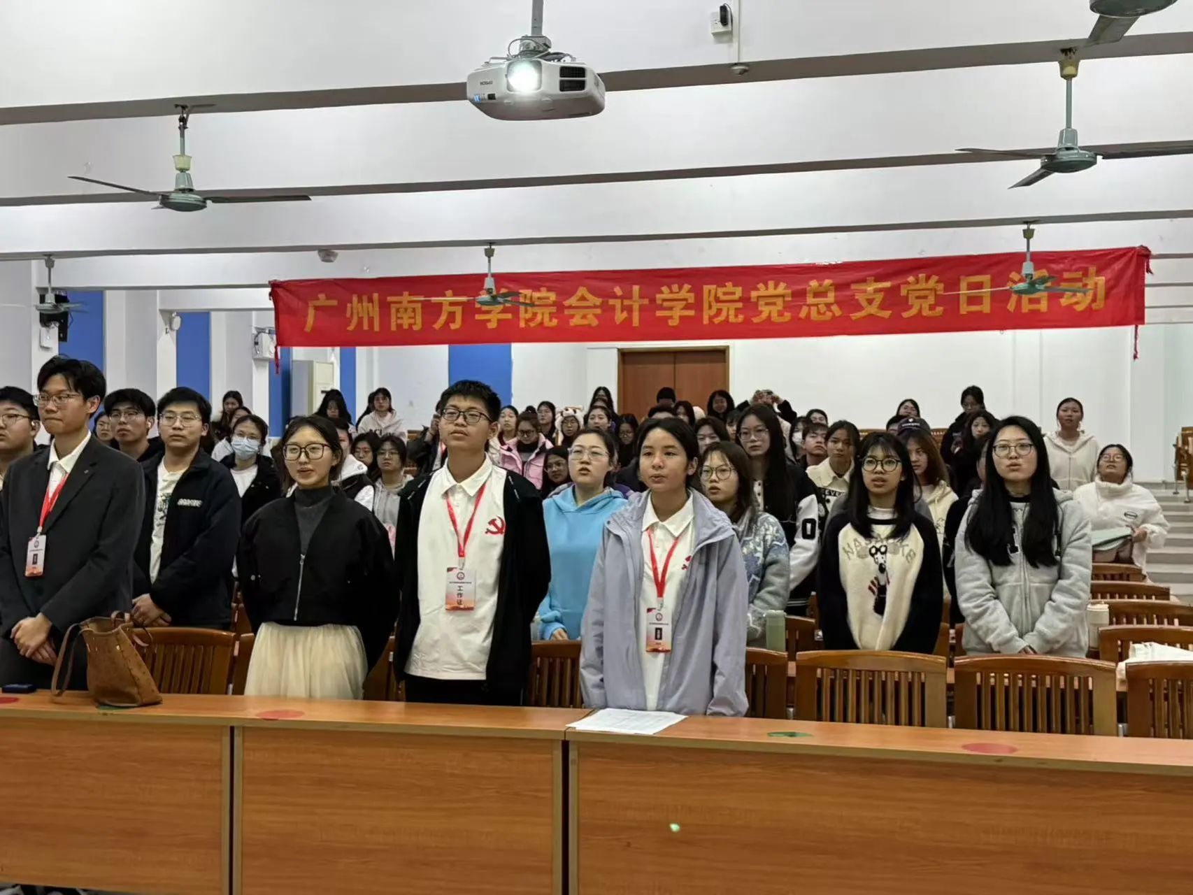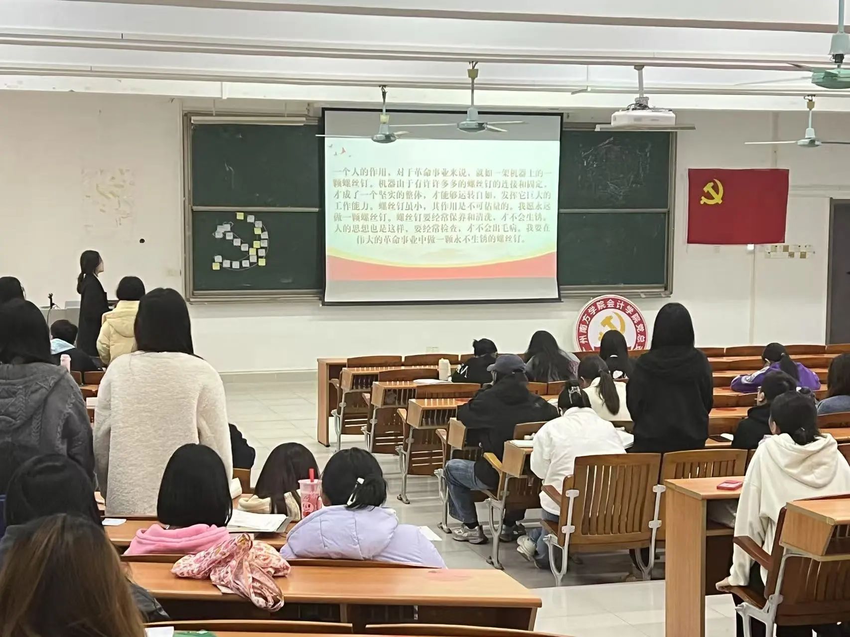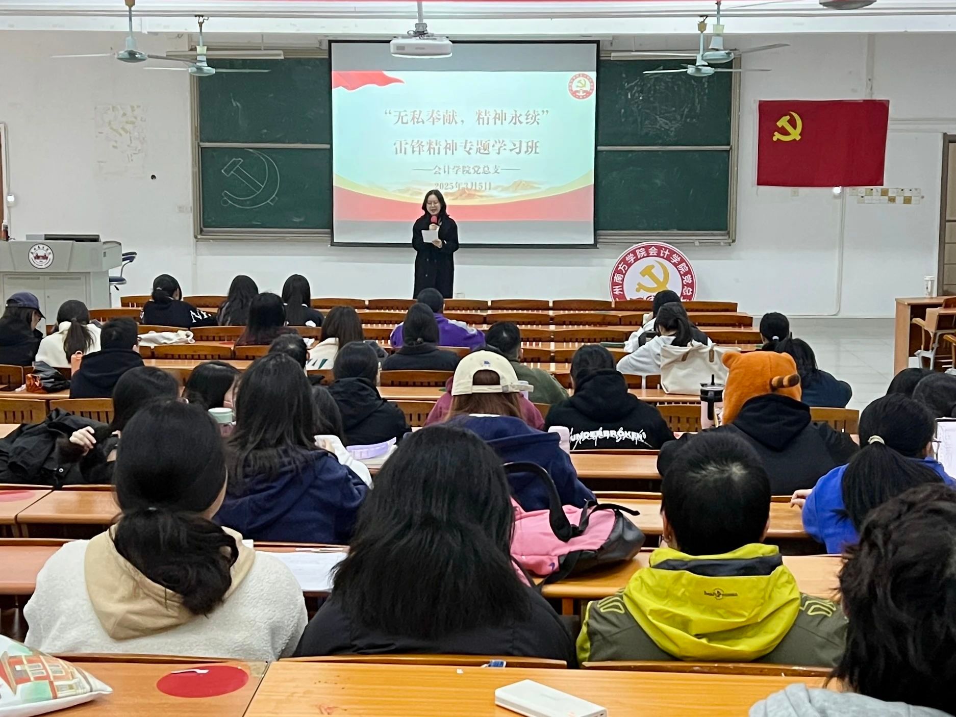 紧接着,党员及入党积极分子起立朗诵《雷锋日记》选段。雷锋同志朴实无华的文字——“我愿永远做一颗螺丝钉”的誓言,随着朗诵声回荡在会场。信仰的温度于文字中流淌,初心的炽热在词句间蔓延。