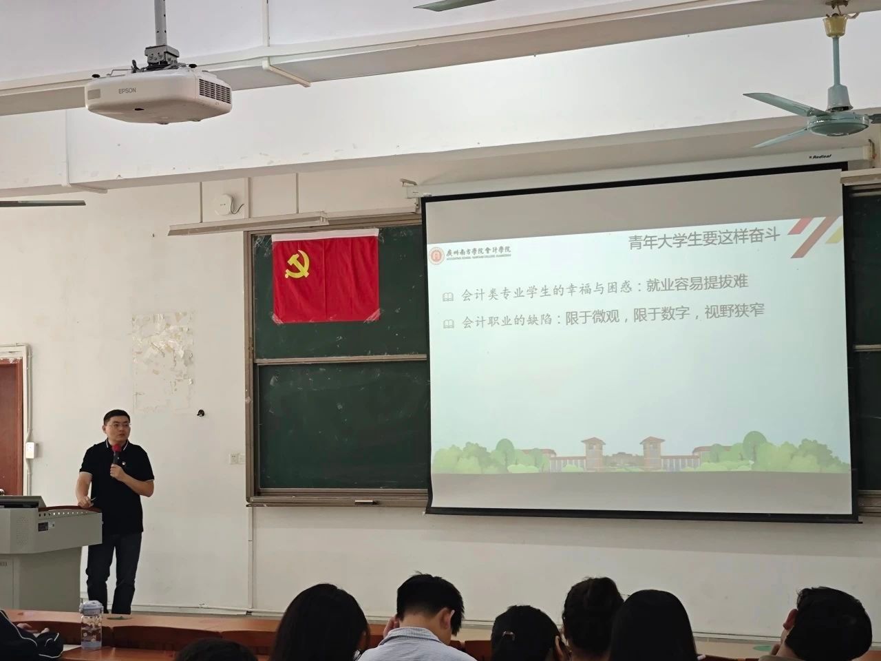面对新时代人才市场竞争日益激烈的现实挑战,董成杰老师强调,在知识经济时代,专业能力是立身之本,同学们应当以“工匠精神”打磨专业素养,通过系统学习考取CPA、ACCA等具有国际认可度的专业资格证书,同时扎实提升英语四六级等基础能力,构建起符合时代要求的复合型知识体系。此外,董成杰老师引用习近平总书记“文明其精神,野蛮其体魄”的重要论述,提醒同学们在快节奏的现代职场中,强健的体魄和良好的心理素质同样是核心竞争力的重要组成部分,同学们要注重身心协调发展。