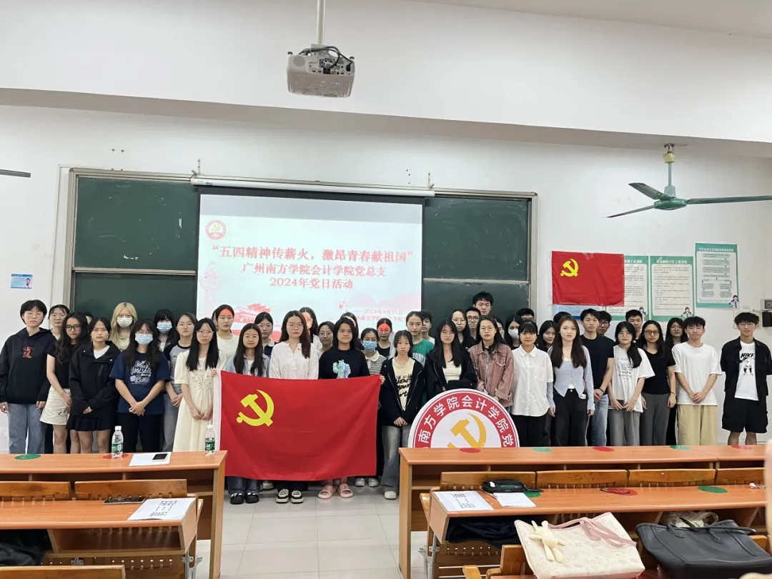 为了让党员同志和入党积极分子们深刻认识到五四运动的意义,充分发扬五四精神,坚定为共产主义事业不懈奋斗的信念与决心,2024年4月21日下午,太阳成集团tyc7111党总支于5教103课室开展以“五四精神传薪火,激昂青春献祖国”为主题的党日活动。陈静菲老师带领学生党员同志、入党积极分子以及党建工作小组全体成员共65人参加了本次党日活动。