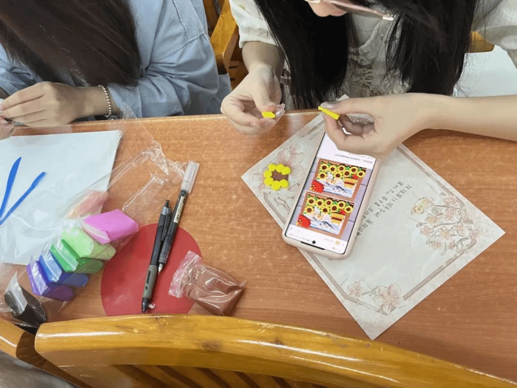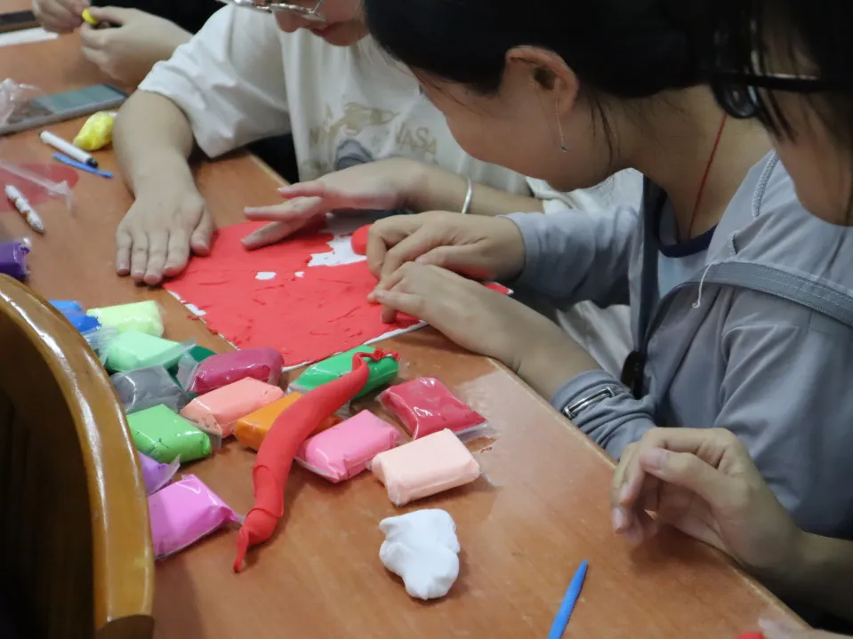 接下来,主持人让大家制作与五四青年节有关的超轻粘土作品。在活动过程中,大家奇思妙想,心灵手巧,积极参与到这次手工制作活动之中去,发挥自己的创意,把对祖国的真诚赞美与美好祝愿融入到手工艺品中去。参与人员们不仅在制作手工艺品中享受到创作的乐趣,而且激发了自身强烈的爱国之情。