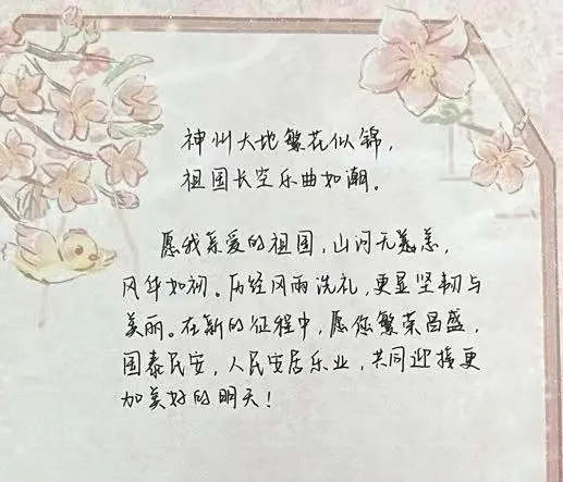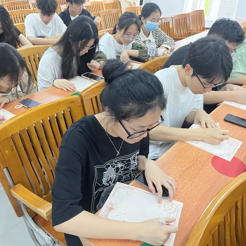 随后,主持人让大家在信纸上写下想对新中国成立75周年说的话并在小组内进行分享。大家以笔为媒,将对祖国的炽热情感和深沉爱意凝结于字里行间,然后将对祖国的感言分享给组里的每位成员,积极热烈地表达对祖国的心意。