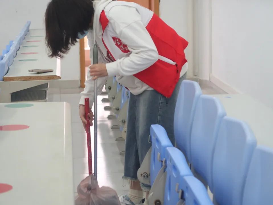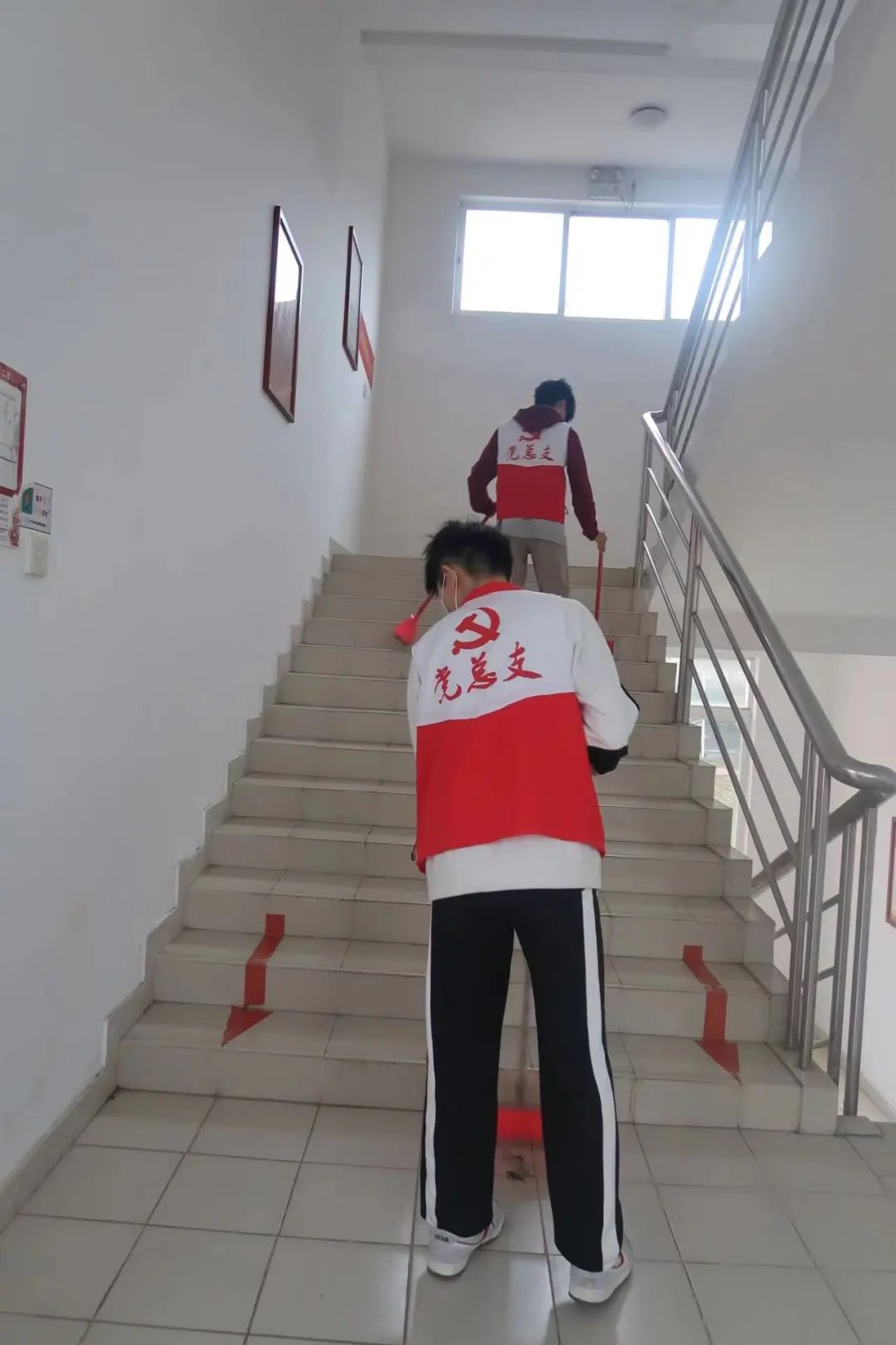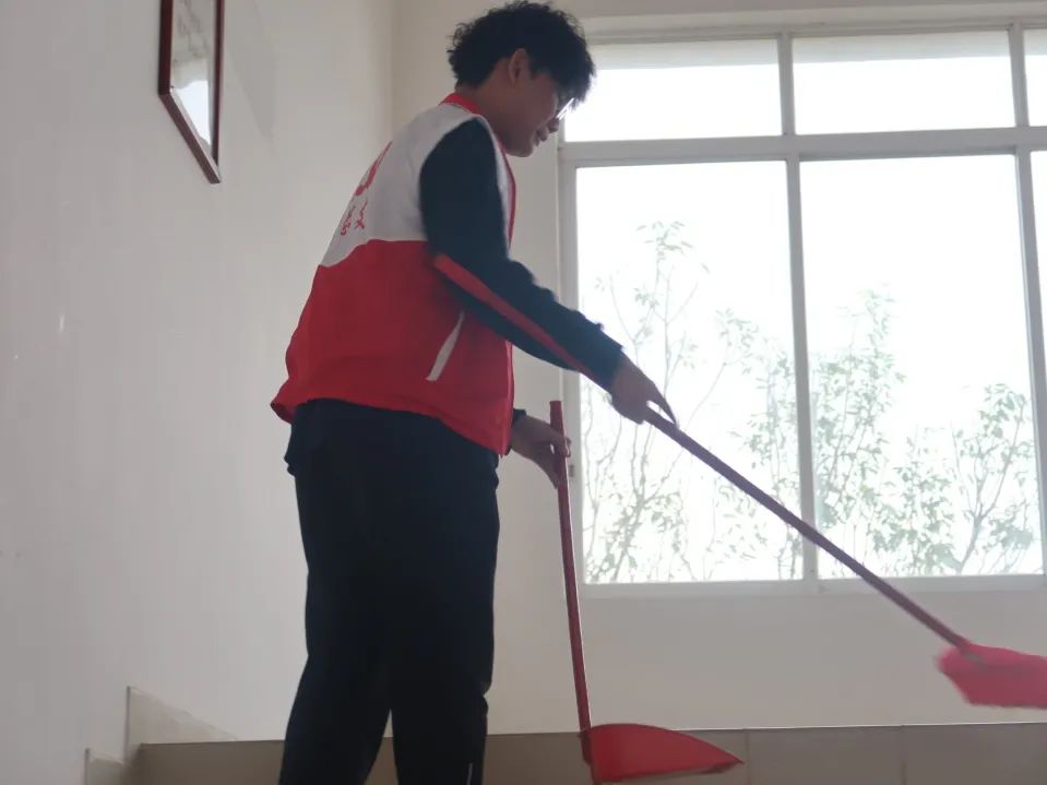 活动过程中,同学们分头行动,带着自己的劳动工具开展清扫活动,不仅对走廊和楼梯等区域进行全面清扫,并且对课室进行细致清理。大家行动迅速而有序,将清洁任务落实到位,充分体现着不怕脏,不怕累的优良作风。