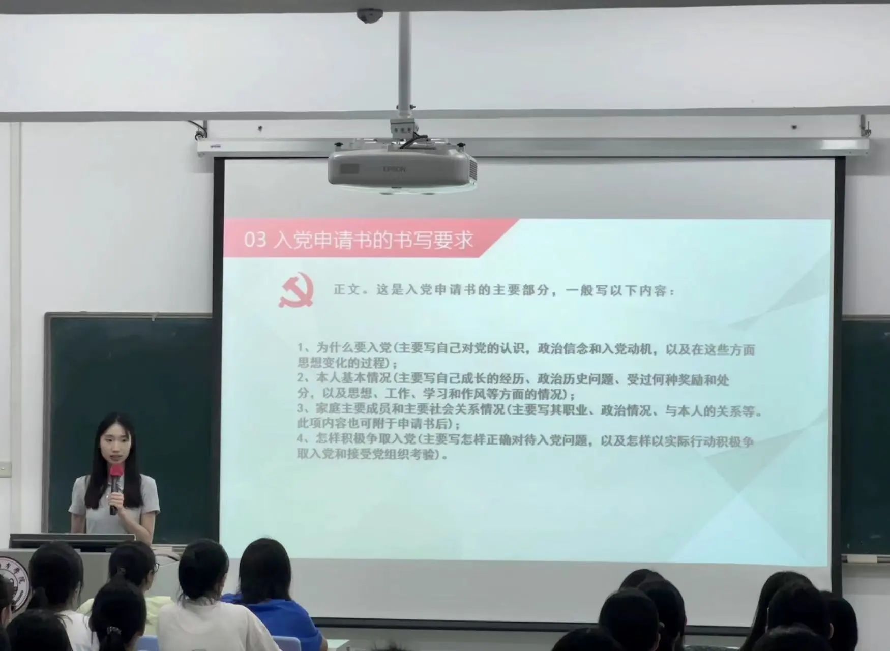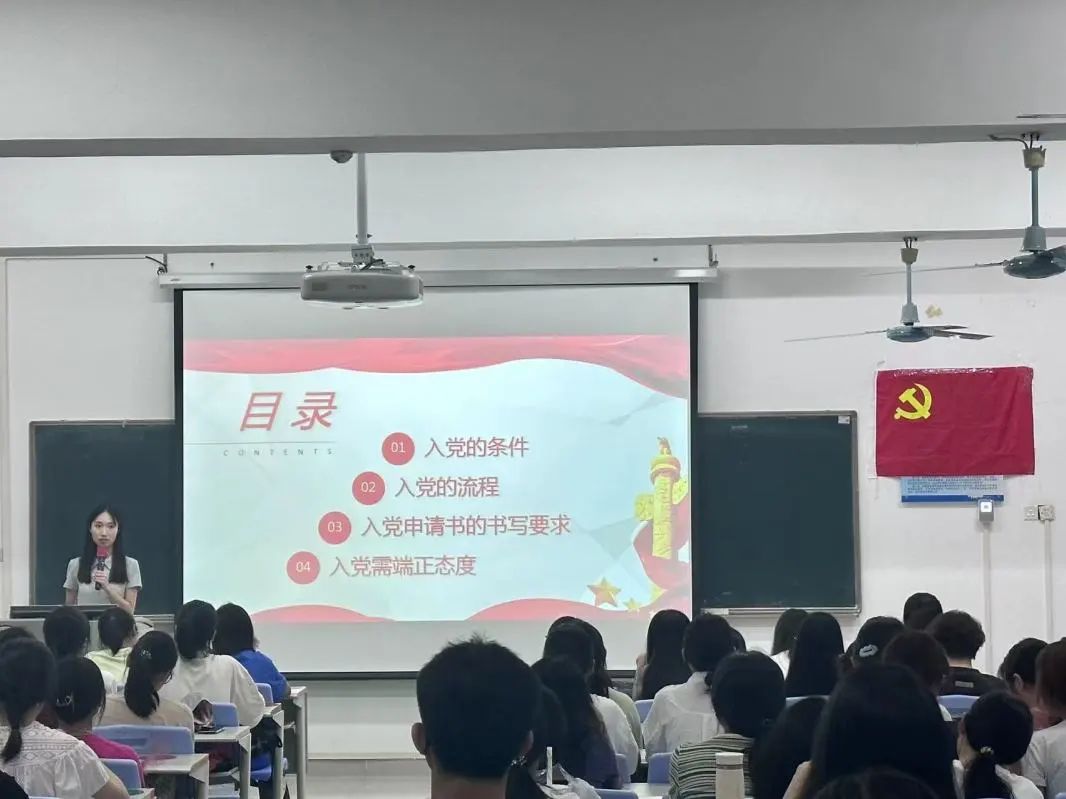随后,学生党员们为新生讲解了入党的条件和流程,介绍了入党申请书的正确方式,同时引导新生要明确入党动机,端正入党态度,不仅仅从组织上入党,更要从思想上入党。