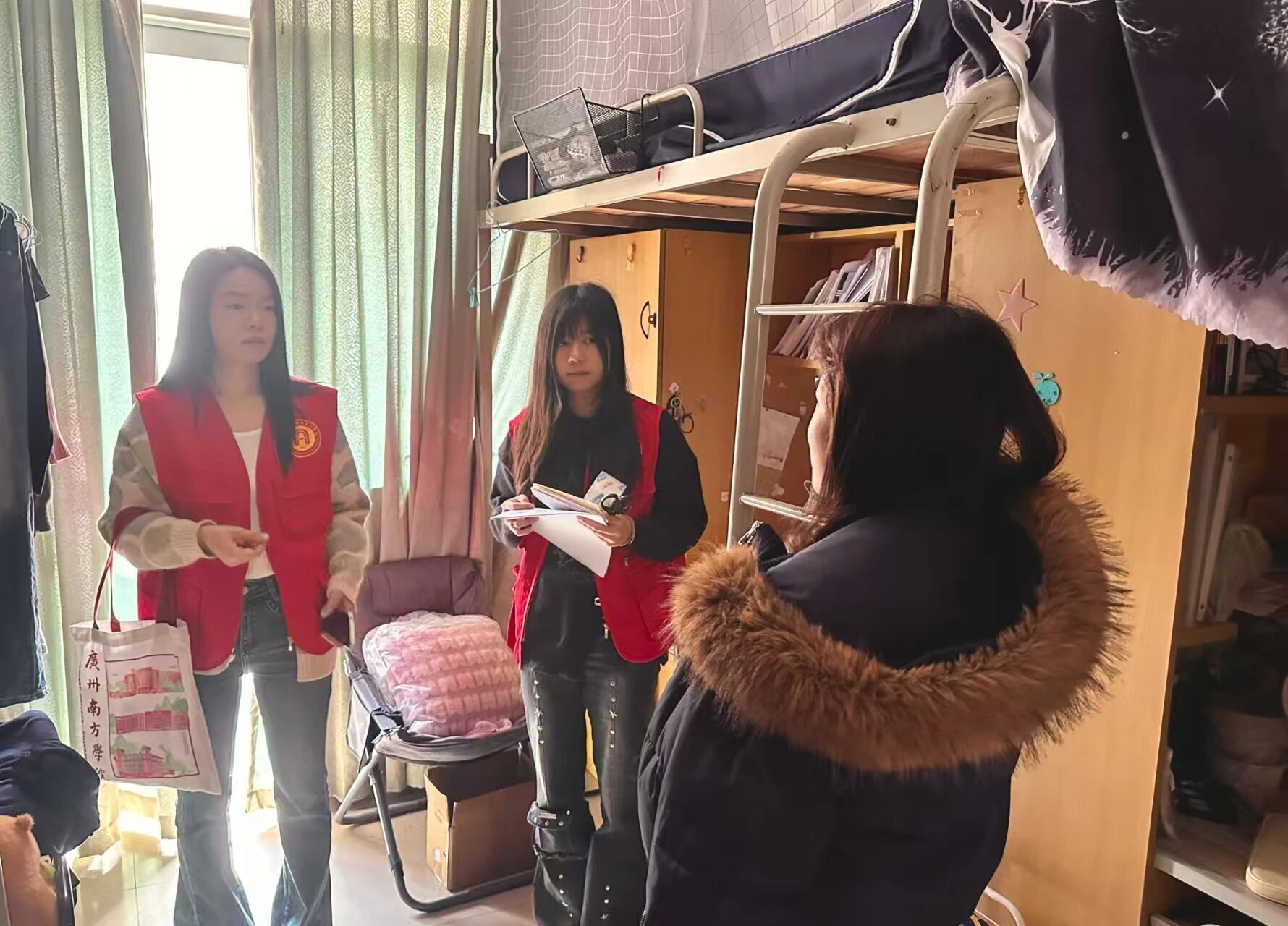 此外,在内务卫生方面,支部党员及入党积极分子围绕宿舍整体卫生环境、垃圾清理、物品摆放、桌面和床铺整理等方面进行了检查。通过深入宿舍,与同学们面对面交流,充分肯定了大多数宿舍的良好卫生习惯,同时也对个别宿舍存在的物品堆放杂乱等问题提出了整改建议,希望同学们保持好宿舍整洁,营造舒适宜居的生活环境,从小处着手,养成良好的生活习惯。