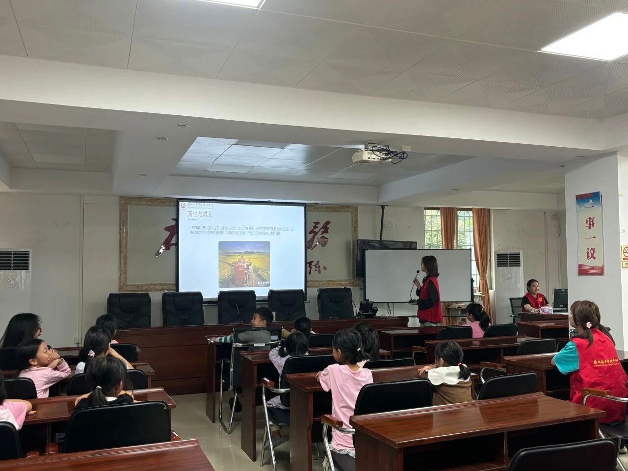 学生党员化身“暖心小老师”,以饱满的热情投入教学。在雷锋精神学习环节,志愿者们以PPT的形式向孩子们讲述雷锋叔叔的光荣事迹;在手工环节,志愿者们带领孩子们绘画自己的母亲、进行手工制作,在动手实践中激发孩子们的好奇心与创造力,现场欢声笑语不断。
