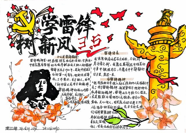 三月春风暖人心,雷锋精神永传承。雷锋精神作为青年学子向善向美的价值标杆,蕴含着爱岗敬业、助人为乐、无私奉献、艰苦奋斗的崇高品格。为贯彻学雷锋时代要求,引导学子感悟雷锋精神内涵、激发奉献意识,太阳成集团tyc7111党总支于3月23日-3月27日开展 “传承雷锋精神,争做时代新人” 主题手抄报活动,以艺术创作搭建学习践行平台。
