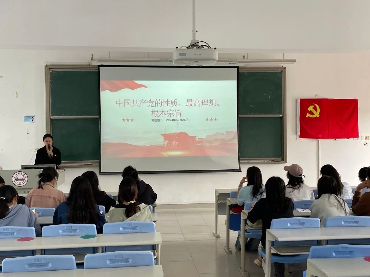 26日早上9点30分,《专题二:中国共产党的性质、最高理想、根本宗旨》由刘盼盼老师主讲,为发展对象详细讲解了中国共产党的性质、最高理想、根本宗旨。首先,刘盼盼老师深入讲解了中国共产党的性质,强调党是中国工人阶级的先锋队,同时是中国人民和中华民族的先锋队,并从三个方面说明了党是中国特色社会主义事业的领导核心。在讲解党的最高理想时,刘盼盼老师通过讲解共产主义是人类历史上最美好的社会制度、是历史发展的必然趋势等方面,指出实现共产主义是党的最高理想和最终目标。最后,刘盼盼老师详细讲解了共产党员的终身课题和其科学内涵,强调共产党员要勇于为人民利益贡献一切以及为人民服务是保持党的先进性的根本要求,全心全意为人民服务是中国共产党的根本宗旨。