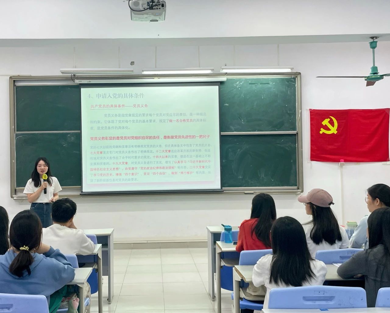 25日晚上7点,《专题一:入党常用文书写法》由申雨弦老师主讲,围绕明确入党条件、了解发展程序以及入党文书写法三个方面进行展开。课程伊始,申雨弦老师以渣滓洞革命烈士的事迹,向发展对象展现了先辈们为党奋斗牺牲的精神,由此引出了申请入党所需的客观条件、主观条件、基本条件以及具体条件。接下来,申雨弦老师从确定入党积极分子阶段、确定发展对象阶段等四个阶段,详细讲解党员的发展程序。具体强调了志愿书的填写、集中培训学习等重要要求。随后,申雨弦老师围绕入党申请书、思想汇报、自传、入党志愿书、转正申请书五种文书进行重点说明,结合焦裕禄、钱学森等人写入党申请书的案例,引导发展对象端正入党动机,坚定理想信念。最后,申雨弦老师带领发展对象了解时政,学习党的二十届三中全会相关内容,并强调各位发展对象应当更加全面地理解和学习党的理论知识,加强党性修养。