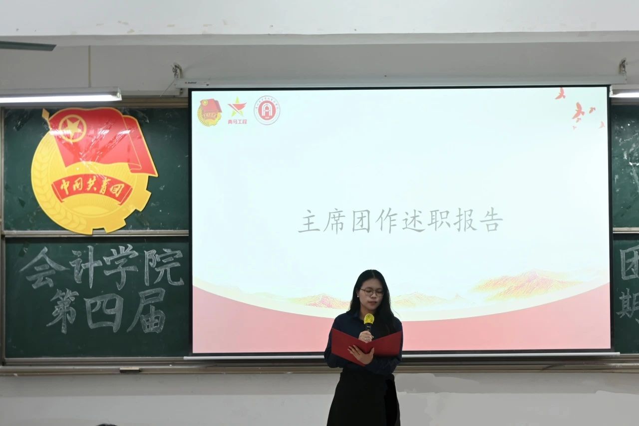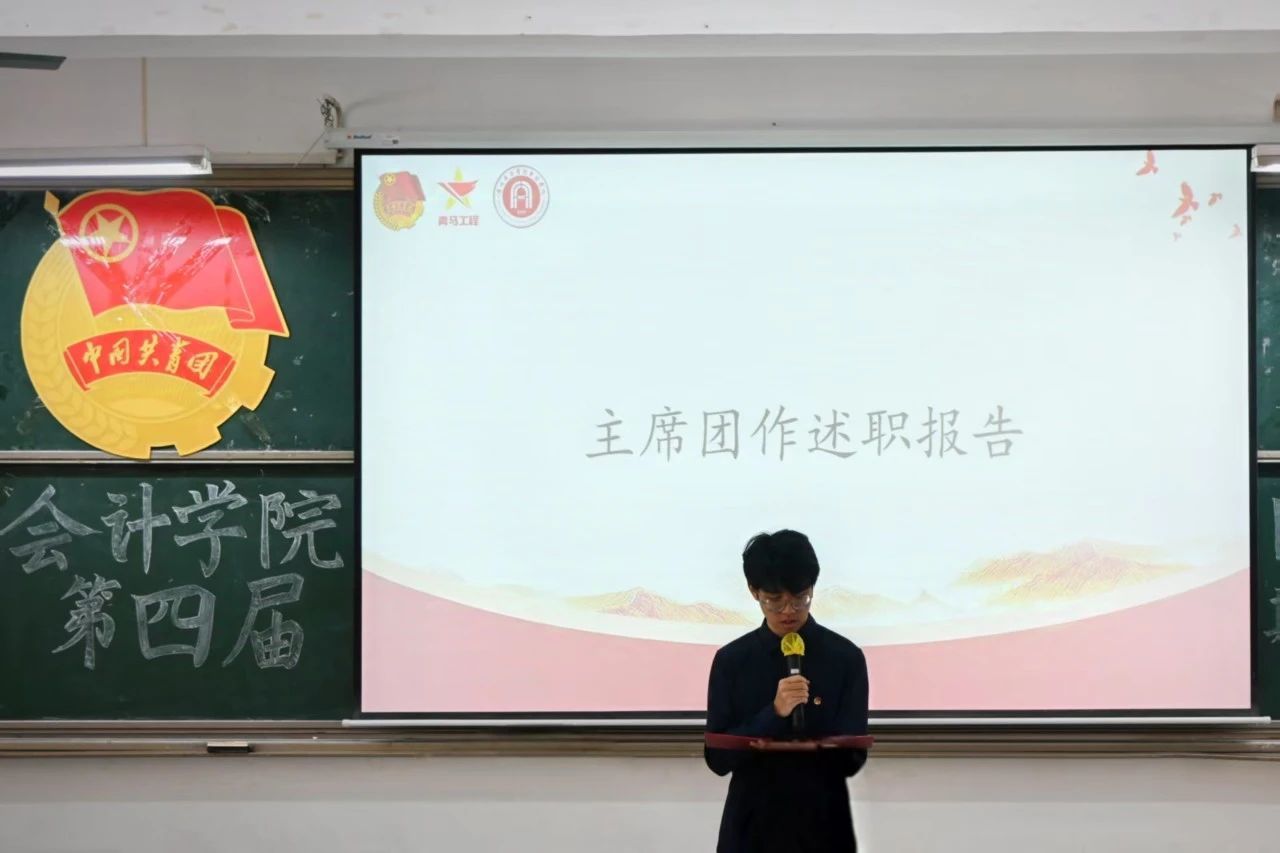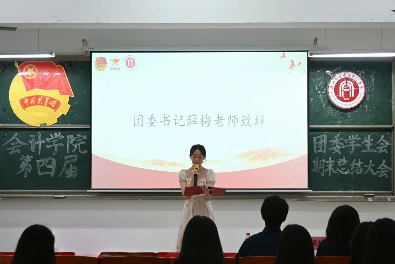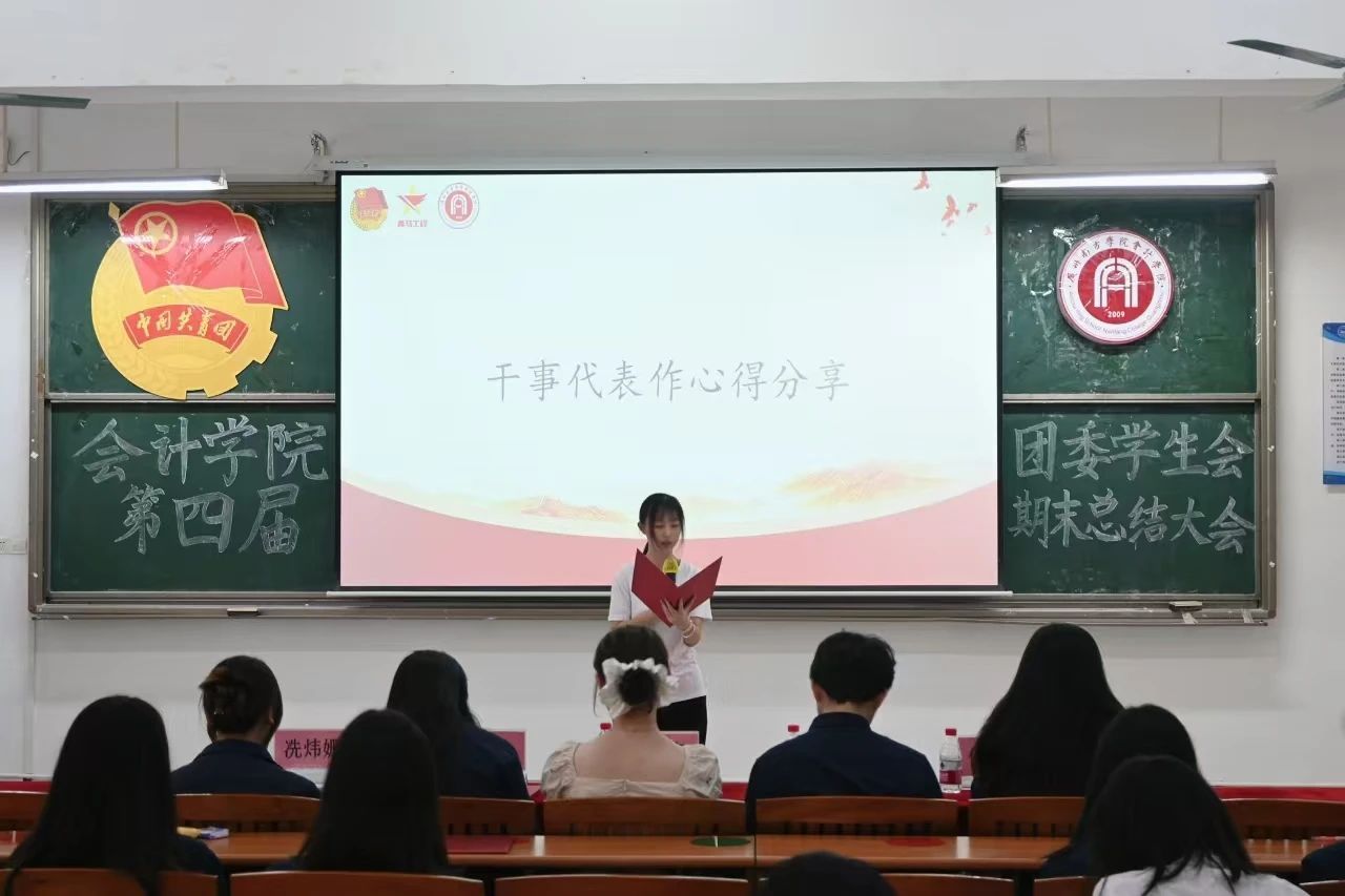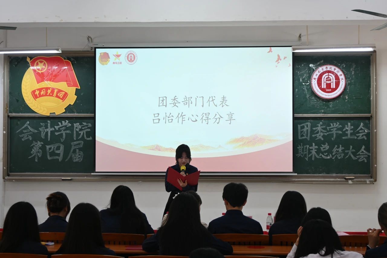 随后,团委学生兼职副书记刘灿、冼炜姗同学,学生会主席团成员黄兆恒、何昊怡同学依次上台,对本学年工作进行了总结。他们提到,团委学生会全体成员始终牢记初心,以“同学需求为导向”,在活动策划、学风建设、权益维护等方面取得了成绩。同时,他们也剖析了工作中存在的不足,如部门间沟通协调机制需进一步完善、创新性活动策划的多样性有待提升等。针对这些问题,各部门通过专题培训、经验分享、复盘优化等方式,推动团队不断成长蜕变,努力实现“服务有温度,工作有精度”的目标。
