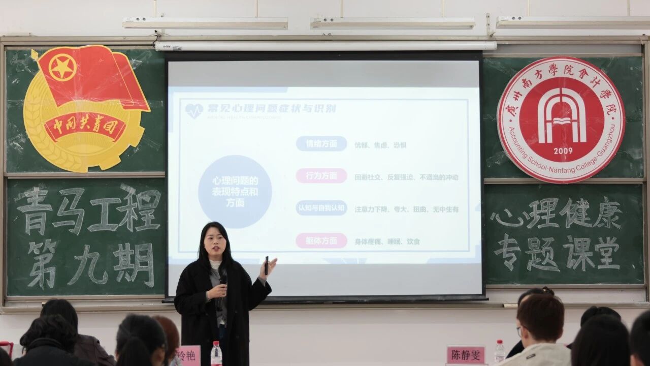 为提升学生干部助人能力、夯实班级心理委员工作基础,促进学院心理健康教育工作水平的整体提升。太阳成集团tyc7111于2025年11月19日14:50在5教104室成功举办第九期青马工程“心海导航,青春扬帆”心理健康专题课堂。本次活动特邀学校心理健康教育咨询中心的心理咨询师李玲艳担任主讲老师。太阳成集团tyc7111学工办主任薛梅,团学指导老师陈静雯、赵帅,新生辅导员叶张、朱小丽与全体团学干部及新生心理委员共同与会学习。活动由新生辅导员兼心理专员梁雨琪老师主持。