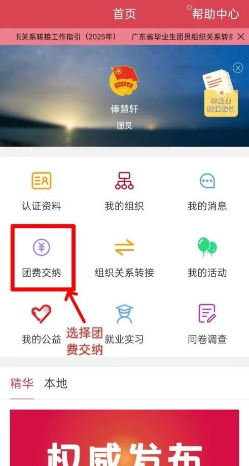 ③如果团费欠缴超过六个月导致无法发起转接,请联系班级团员同学代缴团费,或者联系本班级团支书帮忙代缴团费(缴纳团费方法如图)。