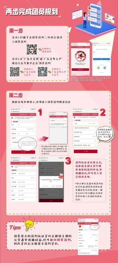 ①外省的同学可扫描下方二维码或者微信公众号上搜索“广东共青团”或者“12355青年之声”,点击下方菜单栏“团员报到”按照系统步骤提示输入,准确填写个人资料,输入团支部关键字搜索所在团支部并进行团员报到即可。