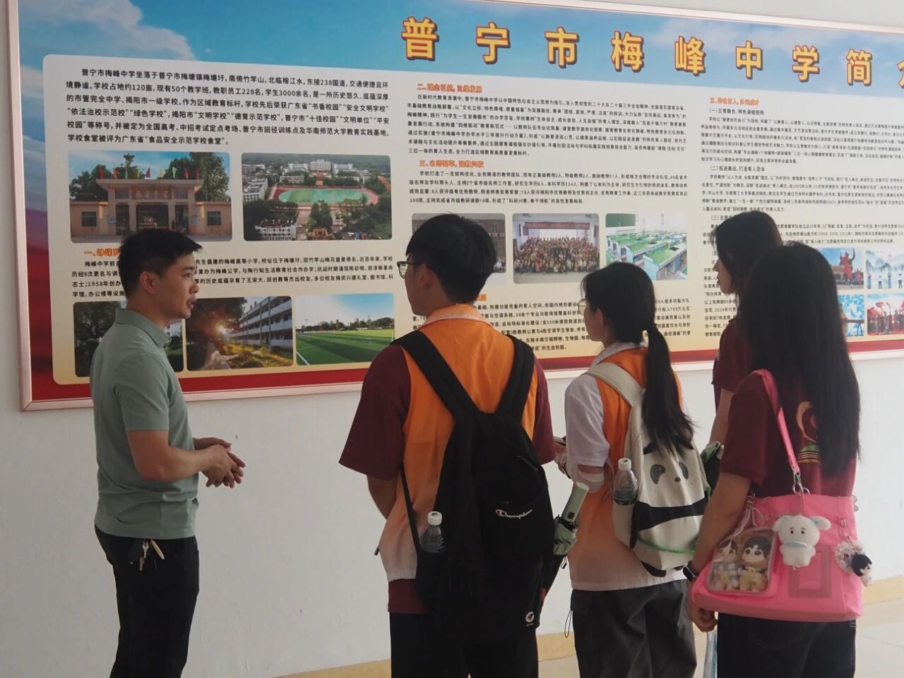 下午,潮韵振兴小队共同前往普宁市梅峰中学,践行宣传使命。普宁市梅峰中学是一所具有悠久历史和光荣革命传统的学校。在新时代的教育浪潮中,普宁市梅峰中学深入贯彻党的二十大及二十届三中全会精神,全面贯彻国家及省、市的战略部署,以“文化立校,特色铸魂,质量强基”为发展路径,大力弘扬“志存高远,奋发有为”的梅峰精神,积极践行“为学生一生发展服务”的办学宗旨。