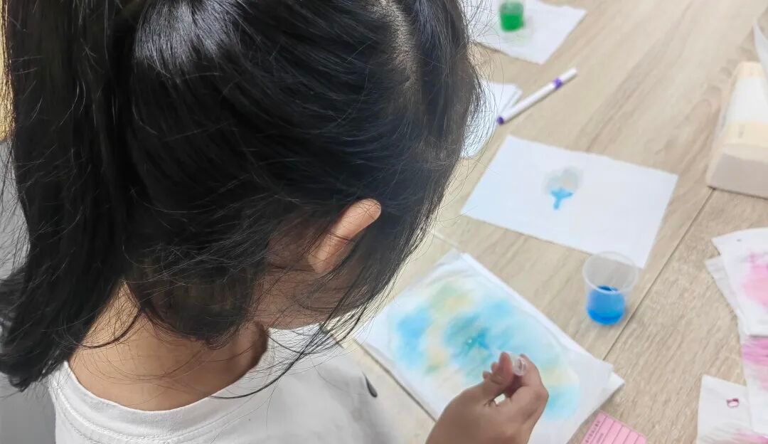 随后创意实践环节正式开始。团队成员先为孩子们分发纸和颜料,鼓励他们自由创作。孩子们充分发挥想象力,在纸上肆意挥洒,勾勒出一个个天马行空的世界。过程中团队成员始终陪伴在孩子们身边,给予耐心细致的指导和鼓励,帮助他们更好地表达自己。