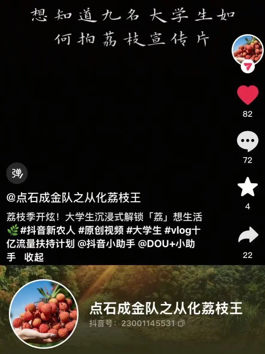 7月7日-8日抵达密石村后,团队首要任务是做好直播前的准备工作。队员们跟着果农穿梭在荔枝林间,详细了解当地荔枝的品种特性、种植环境和销售现状。密石村的荔枝以桂味、糯米糍为主,因口感清甜、果肉饱满深受喜爱,但受限于地理位置和销售方式,销售渠道较窄。对此,队伍决定在抖音平台上建立密石村专属账号,发布的内容在涵盖“预热视频”的同时,还能在账号中长期发布各种图片及宣传视频,巧妙地将这次网络直播的“短期性”转变为对密石村“可持续性”依托网络平台拓展农业销售渠道打下基础。为了让直播更具吸引力,团队将直播场地挑选在果实密集的荔枝树下,既能让观众直观看到挂满枝头的荔枝,又能凸显原生态的种植环境。队员们团结一致、分工协作,而预热视频在抖音平台发布后,也提前为直播积攒了人气,让更多人知道密石村有这样一批新鲜荔枝等待被“带走”。