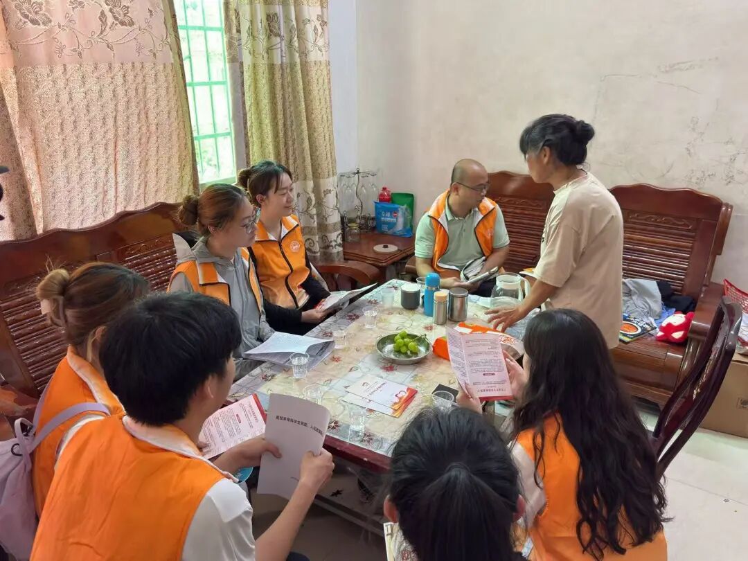 7月6日下午,点石成金队在村干部的带领下,开始进行入户宣讲。炎炎夏日里,队员们走进一户户村民家中,持续推进“入户式”政策解读。大家秉持着“服务群众,温暖人心”的理念,每到一户,老师们便用亲切的方言与村民拉家常、问学情,队员们则根据家庭实际情况“量身定制”讲解内容,将繁杂的政策转化为通俗易懂的语言。在村民李大叔家,得知其孙女即将升入高中,队员们便重点介绍了高中学段的助学金政策;面对文化程度较低的张奶奶,队员则通过图文并茂的宣传册,用直白朴实的话语解释助学贷款如何“先上学、后还款”,这样的宣讲——真正实现了政策宣传“接地气、有温度”。
