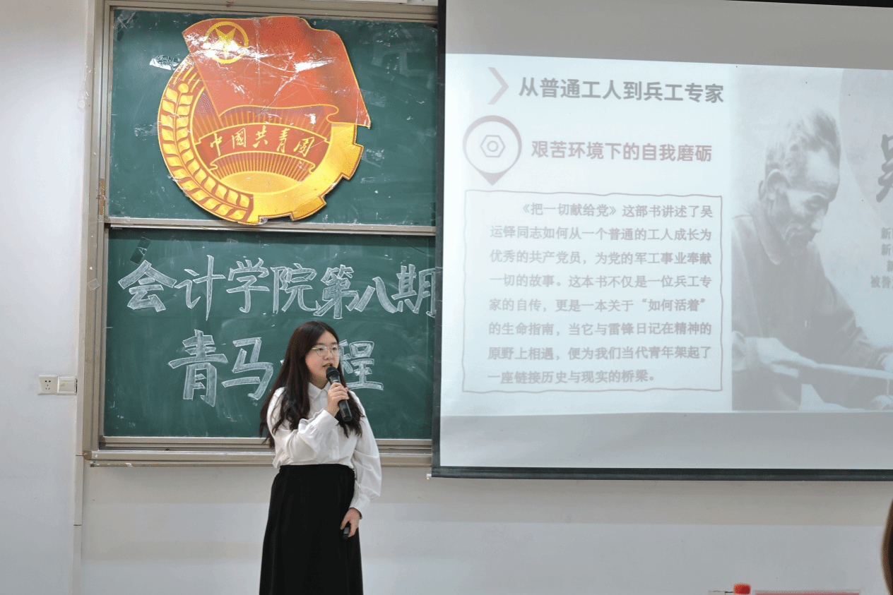 3月21日,太阳成集团tyc7111团委学生会举办第八期青马工程“雷锋精神,书海传薪”红色读书分享会。活动中,学员代表们围绕《觉醒年代》《雷锋日记》等经典著作展开分享,结合书中内涵与个人成长经历,探讨红色基因对当代青年思想引领和实践指导的双重意义,进一步明晰了雷锋精神在新时代的实践坐标。