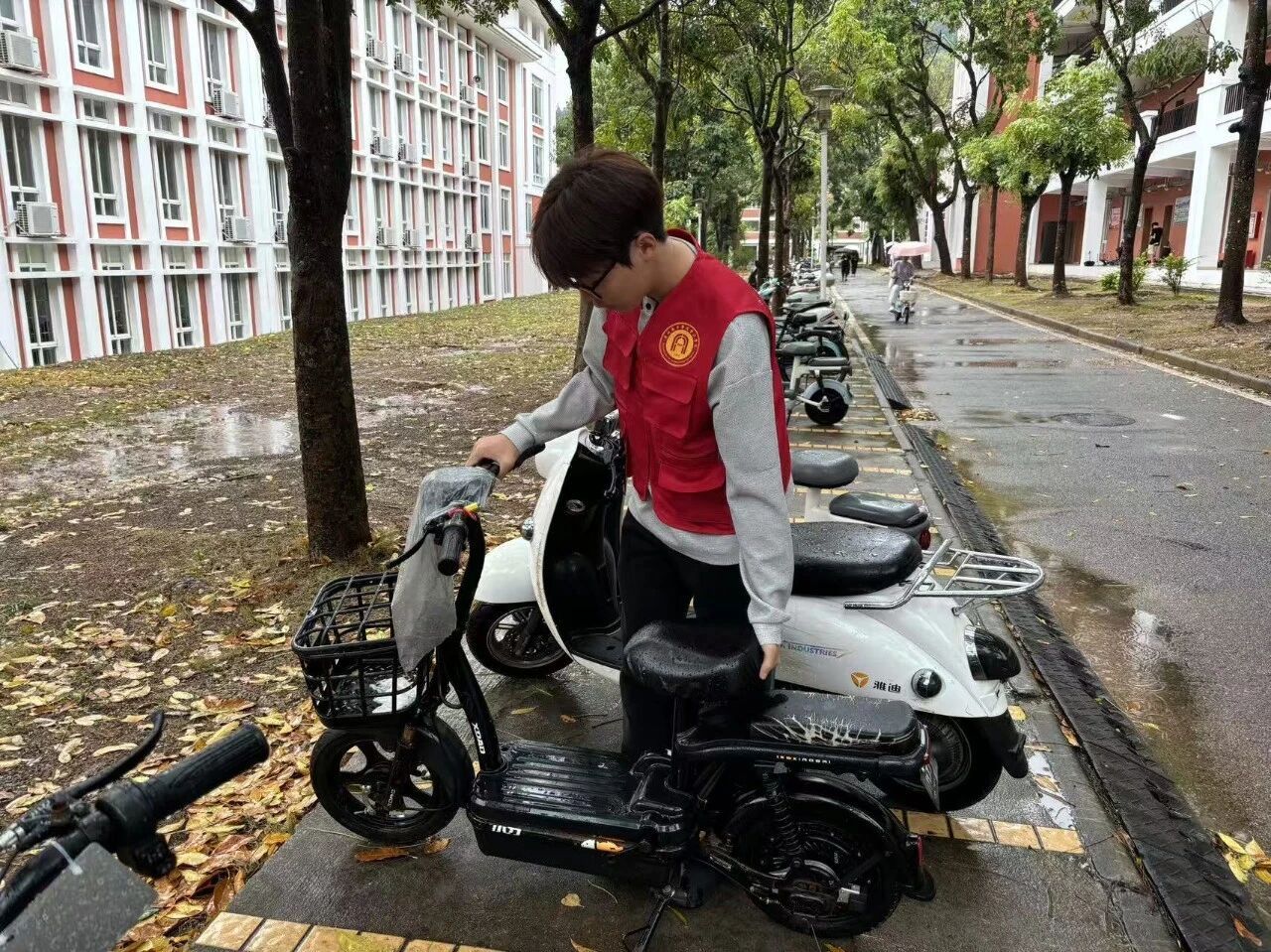 躬身实践,服务立学。学院组织开展“志愿服务践初心,洁净校园共守护”志愿摆车活动,志愿者在第五教学楼周边整理乱停电动车、引导规范停放,以实干精神践行雷锋精神,培育责任意识与集体观念,让文明有礼、严于律己的学风在躬身实践中落地生根。