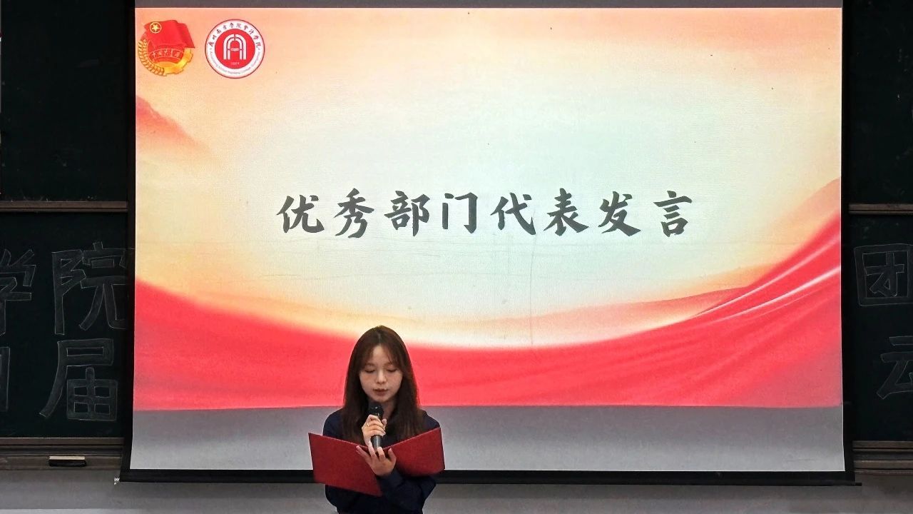 随后,优秀部门代表蒋婵上台发言,她对支持秘书处工作的老师和同学们表达了感谢,并回顾了过去一年的工作历程,分享了自己在秘书处工作所积累的宝贵经验。她希望新成员们能够在老师的领导和部门负责人的带领下保持热情与专注,持续为太阳成集团tyc7111团委学生会的发展添砖加瓦,贡献自己的力量。