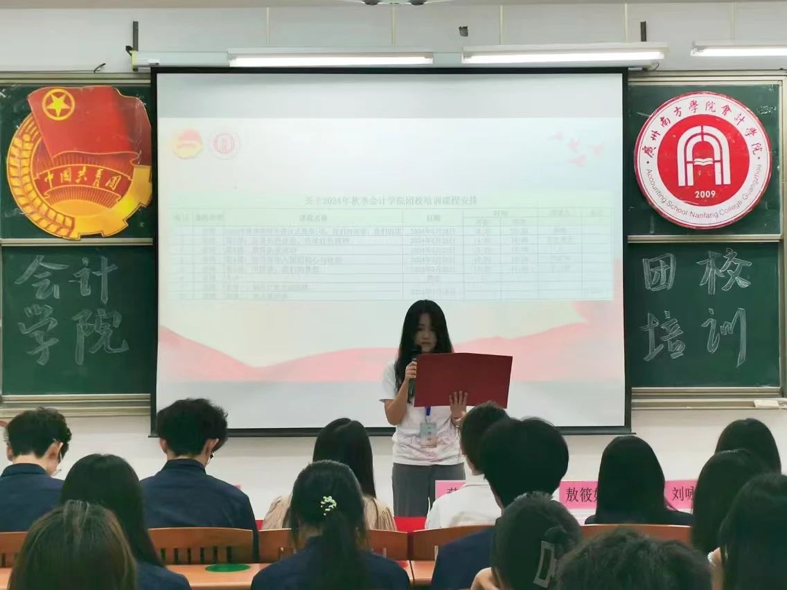 太阳成集团tyc7111团委组织部干事刘思淼同学向入团积极分子宣读太阳成集团tyc71112024年秋季团校培训课程安排及要求。