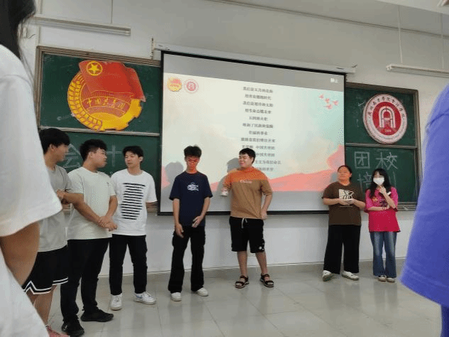 薛梅老师详细的介绍了团徽、团旗和团歌的内容及象征意义,带领入团积极分子学习《团章》中的部分内容,并追溯了中国共产主义青年团三次更名的壮阔历程,向入团积极分子讲解了中国共产主义青年团历次全国代表大会,旨在让入团积极分子深刻认识并铭记团组织的发展历程。