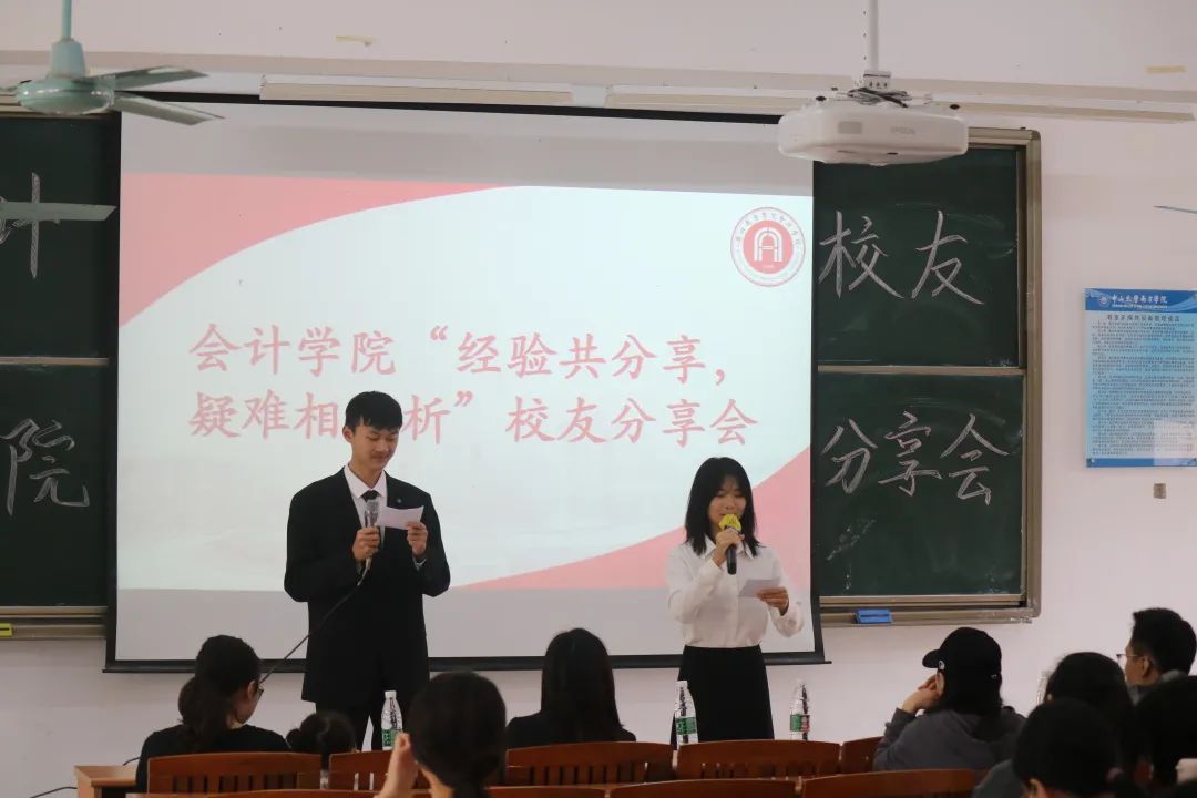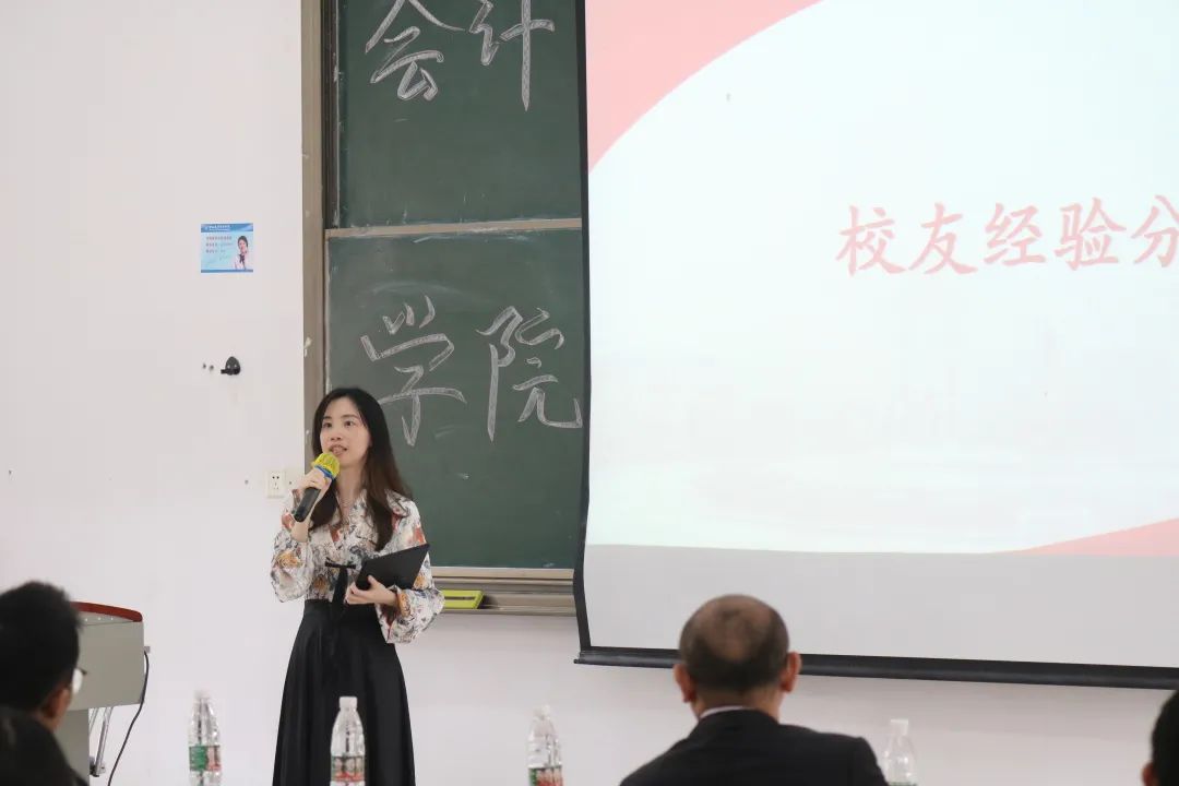 供职于广东方则里律师事务所2007级张懿师姐分享她当年考研以及读研的经历,她鼓励师弟师妹们要勇于追求,勇于挑战,珍惜机会,把握未来,充分做好规划。张懿师姐还分享了她考司法考试以及做律师的经历,她认为读会计不一定干会计,希望同学们能够追求梦想,并为之付出行动和努力,每个同学都能遇见不一样的自己。供职于增城国家税务局的2019级钟嘉麒师姐则鼓励同学们要从“设立目标,科学评估,执行与控制,争取父母支持”四个方面去管理自己。希望同学们能找准定位,保持自信。2013级的周惠珊师姐向同学们则鼓励同学们在校期间从要知识、综合能力和核心价值观等全面发展,早作职业规划,找准定位,树立信心,付出行动,将自身发展和学院发展、社会进步紧密结合。