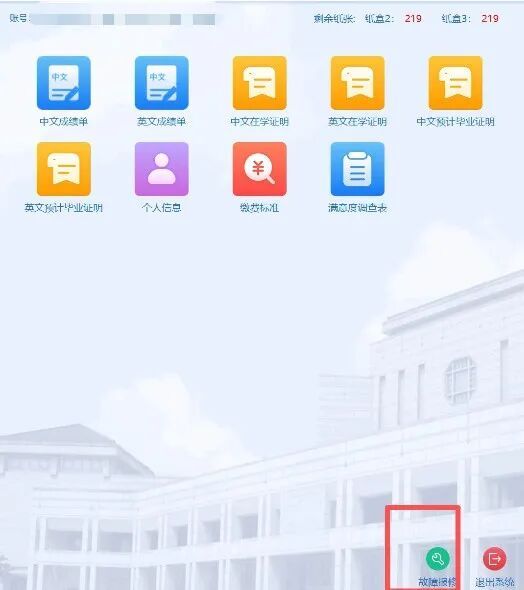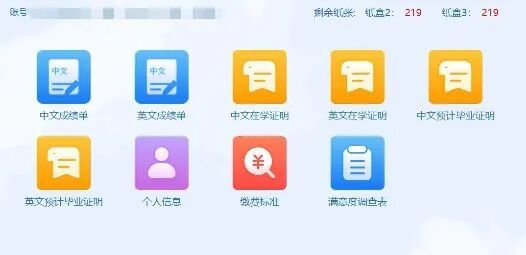 进入系统后,界面会显示电子成绩单和电子证明两个功能模块,选择需要生成的文件即可。