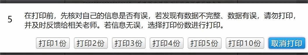 文件材料内容确认无误后,点击右下角“打印”,选择份数进行打印。