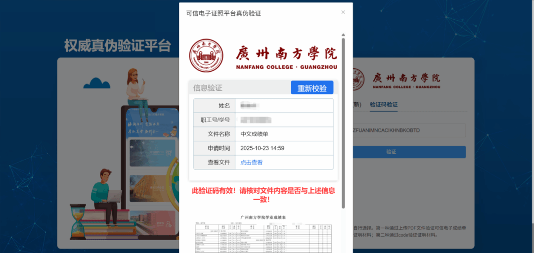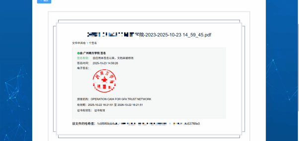 1.上传PDF文件验证:上传PDF文件,输入验证码进行文件验证。随后可查看验证结果,确认签名信息和文件是否正确。
