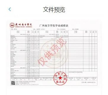 选择需要的文件,进行预览,如“本科中文成绩单”,确认信息是否准确。