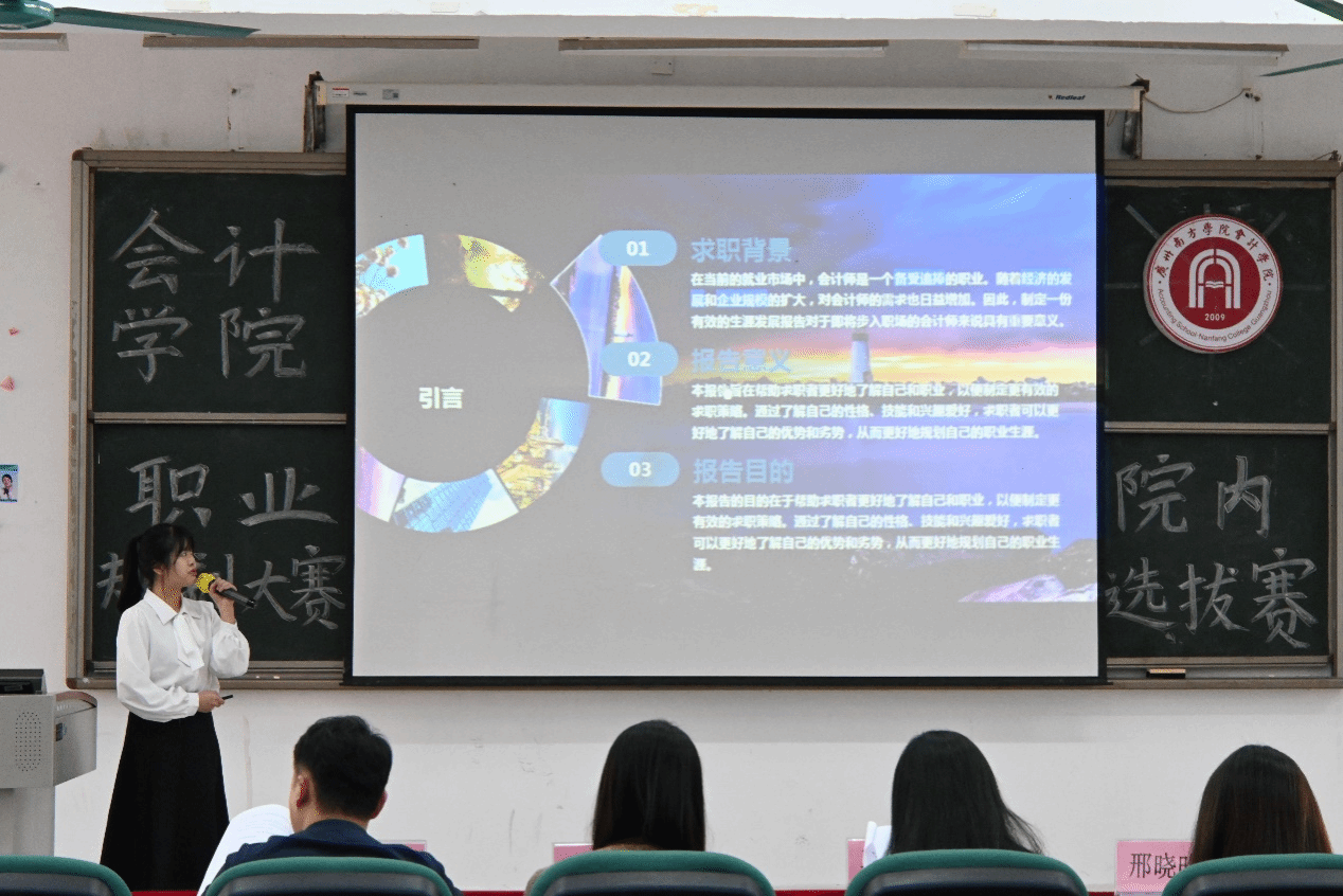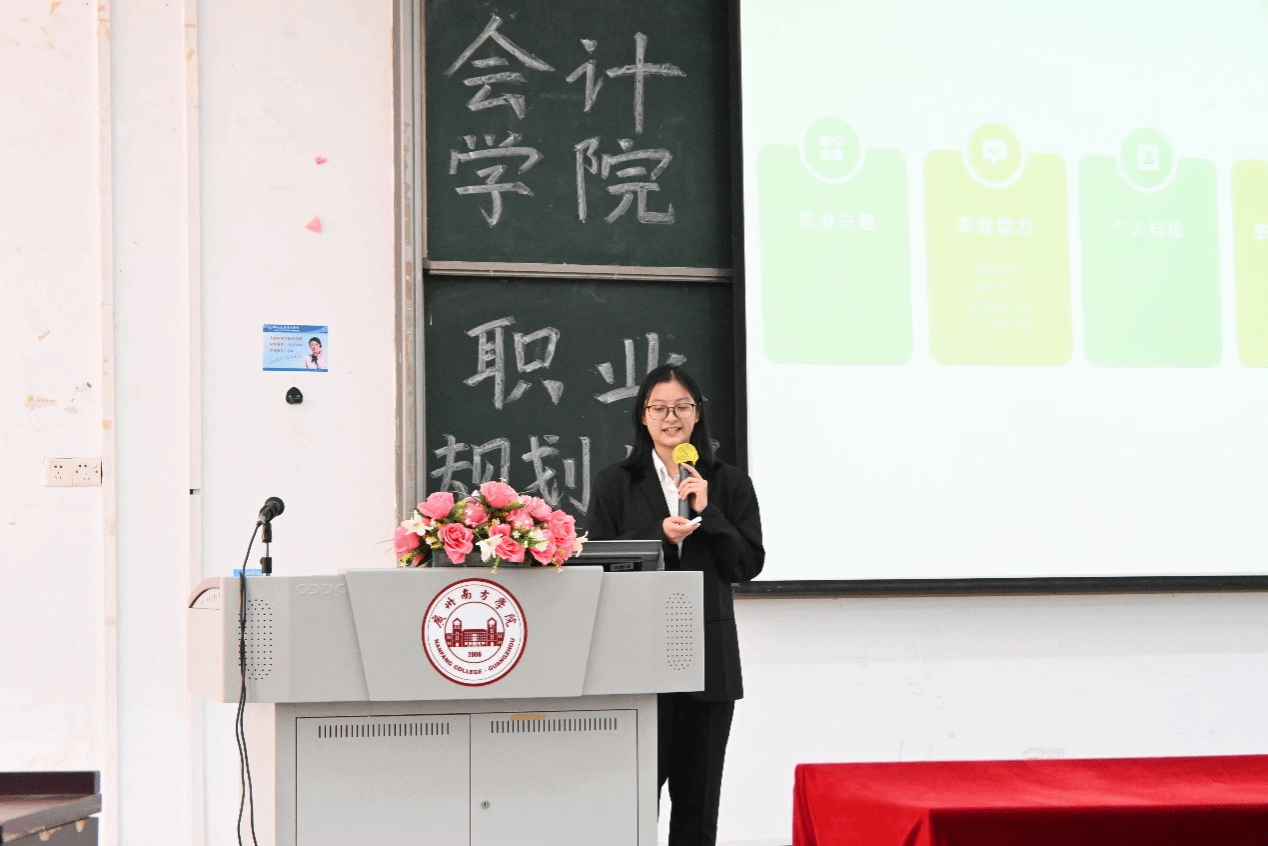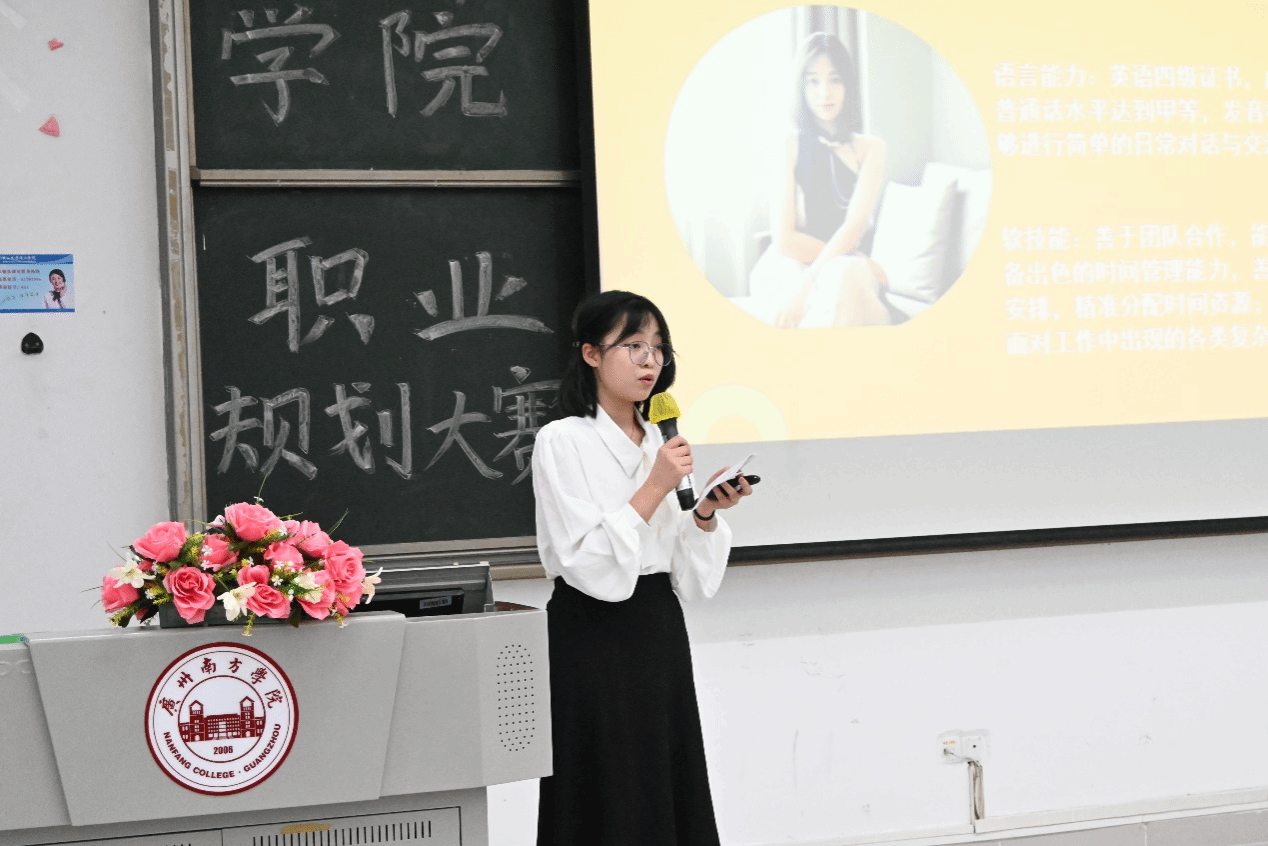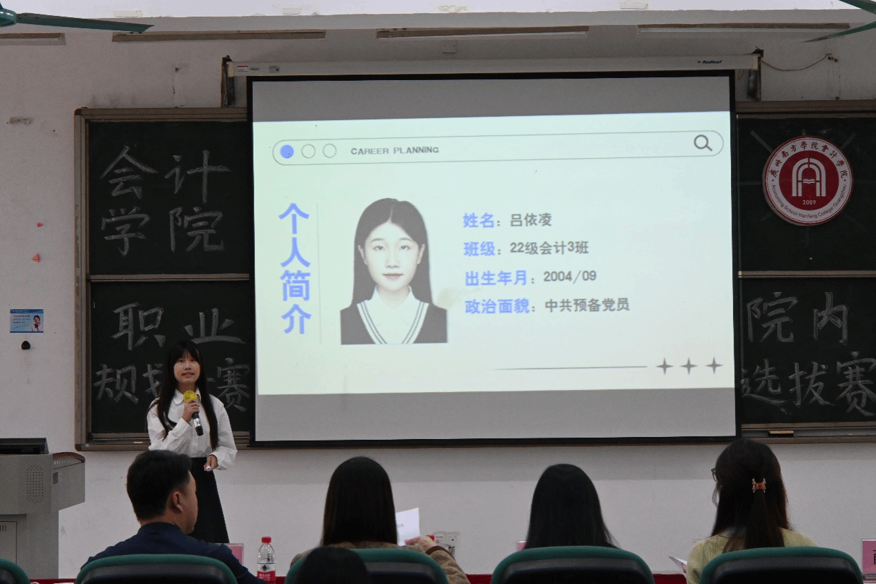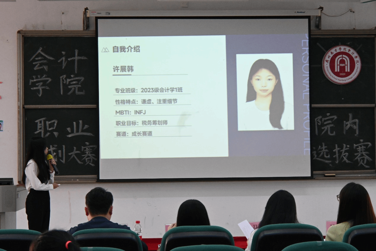 在成长赛道的主题陈词阶段,选手们借助MBTI性格测试、霍兰德职业倾向测试的结果,以及学业绩点和所获得证书荣誉,全面介绍了自己的个性特点、专业能力和对未来职业道路的初步设想。他们分享了自己如何在学习和实践中逐步明确职业目标,并为此付出的努力。