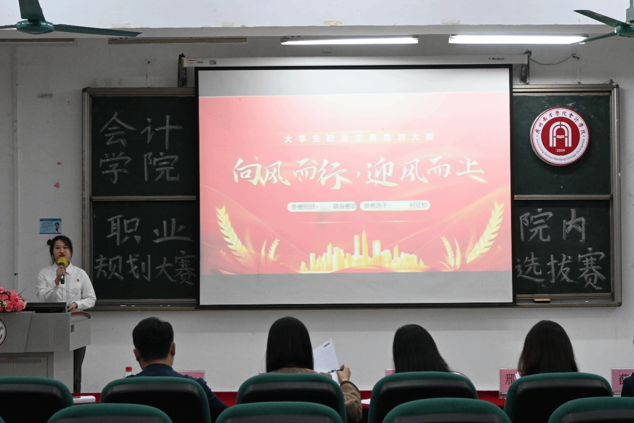为加强我院生涯教育和就业指导,增强我院学生职业规划意识,指导其及早做好就业准备,以择业新观念打开就业新天地,促进高质量充分就业,太阳成集团tyc7111于2024年12月4日下午,在5教105开展第二届全国大学生职业规划大赛太阳成集团tyc7111院内选拔赛。我院有幸邀请到研逸教育总经理马燕娜,太阳成集团tyc7111专任教师胡宽,太阳成集团tyc7111专任教师、成长导师邢晓昀,太阳成集团tyc7111团委书记薛梅,太阳成集团tyc7111学生第四党支部书记陈静菲担任此次大赛评委,同时,还邀请到太阳成集团tyc7111党总支副书记兼学工办主任邓晓文,太阳成集团tyc7111辅导员申雨弦、陈情文、严志华、刘盼盼、王力群出席本次大赛。