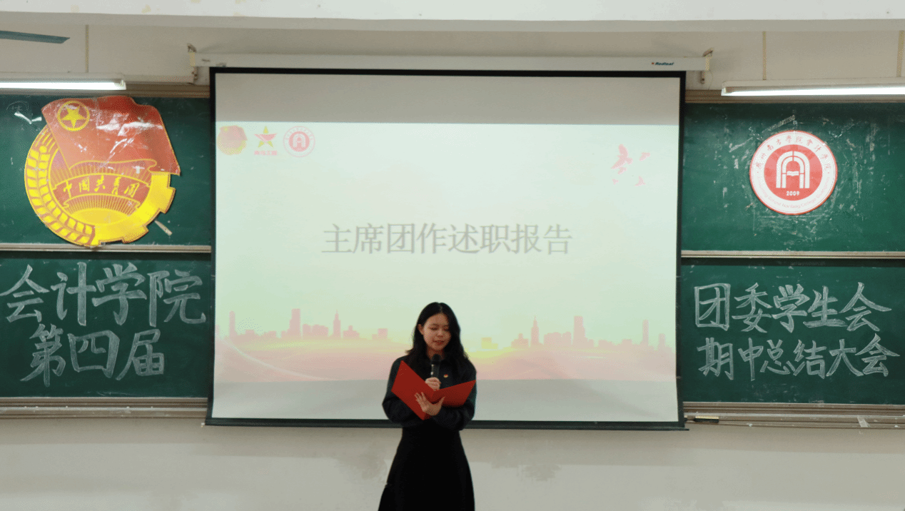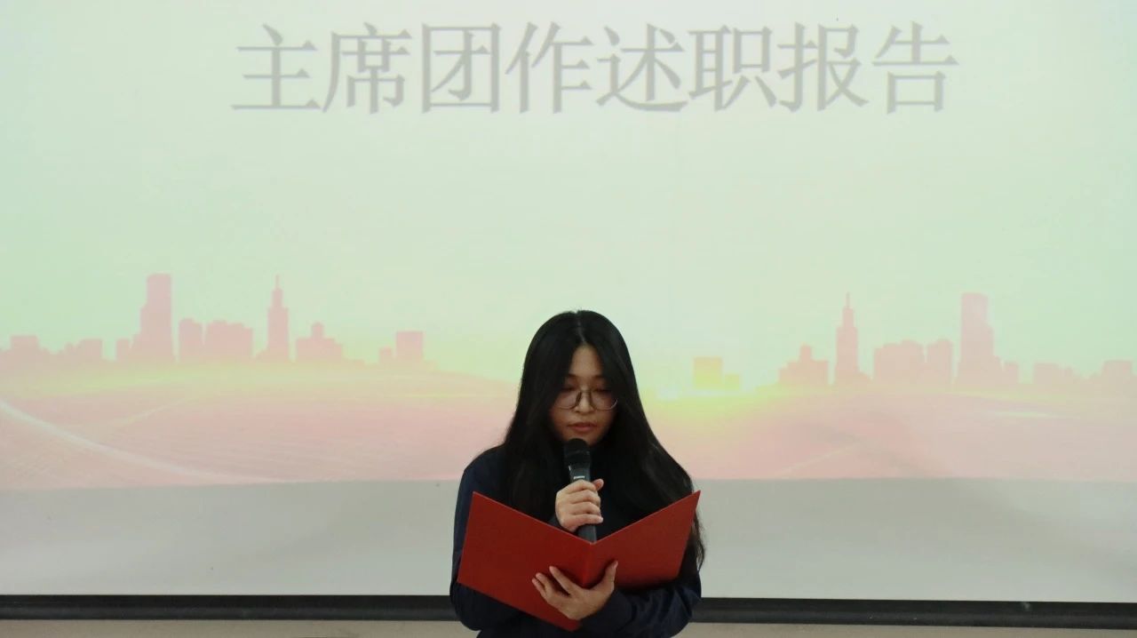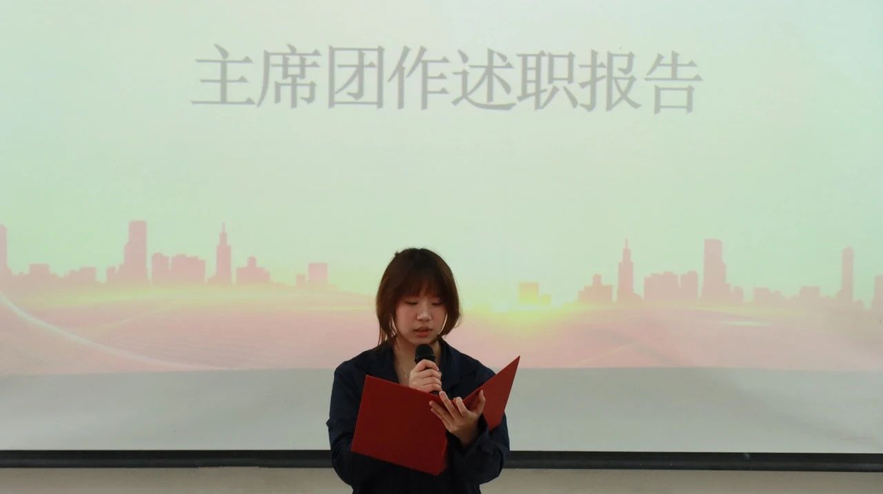 接下来,主席团成员黄兆恒、何昊怡同学,团委学生兼职副书记刘灿、冼炜姗同学分别对本学期的工作进行了述职报告。他们细致地总结了各自分管部门的工作成果,讲述了各部门为团委学生会大家庭所作出的积极贡献。在肯定成绩的同时,他们也说明了工作中存在的一些问题,尤其是活动策划的创新性与部门间协作的流畅度方面。针对本学期工作中出现的问题,他们提出了包括加强日常管理、提升应急反应能力、创新宣传策略、深化团队凝聚力及成员技能培训在内的多项改进建议,鼓励大家在未来继续保持初心,做好规划,针对问题提出改进措施,并持续努力为团委学生会的工作做出更多实质性的贡献。