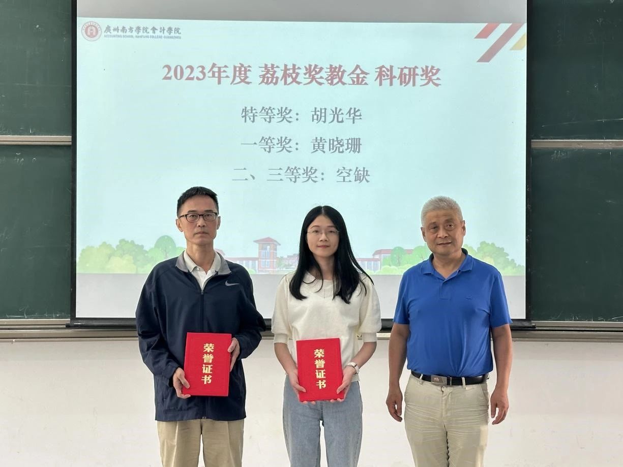 随后,卫建国院长为2023年在科研、教学、服务等方面做出杰出贡献的教职工进行了“荔枝奖教金”的颁奖。