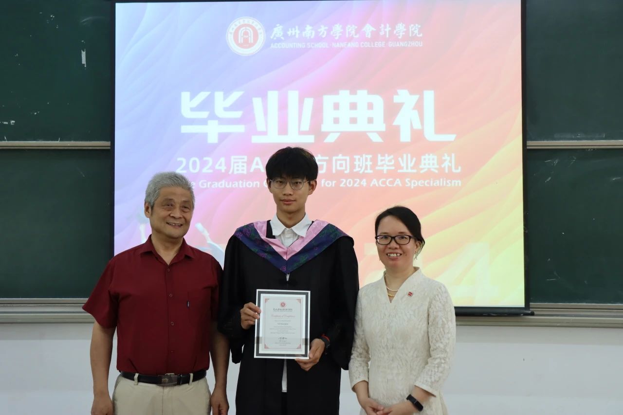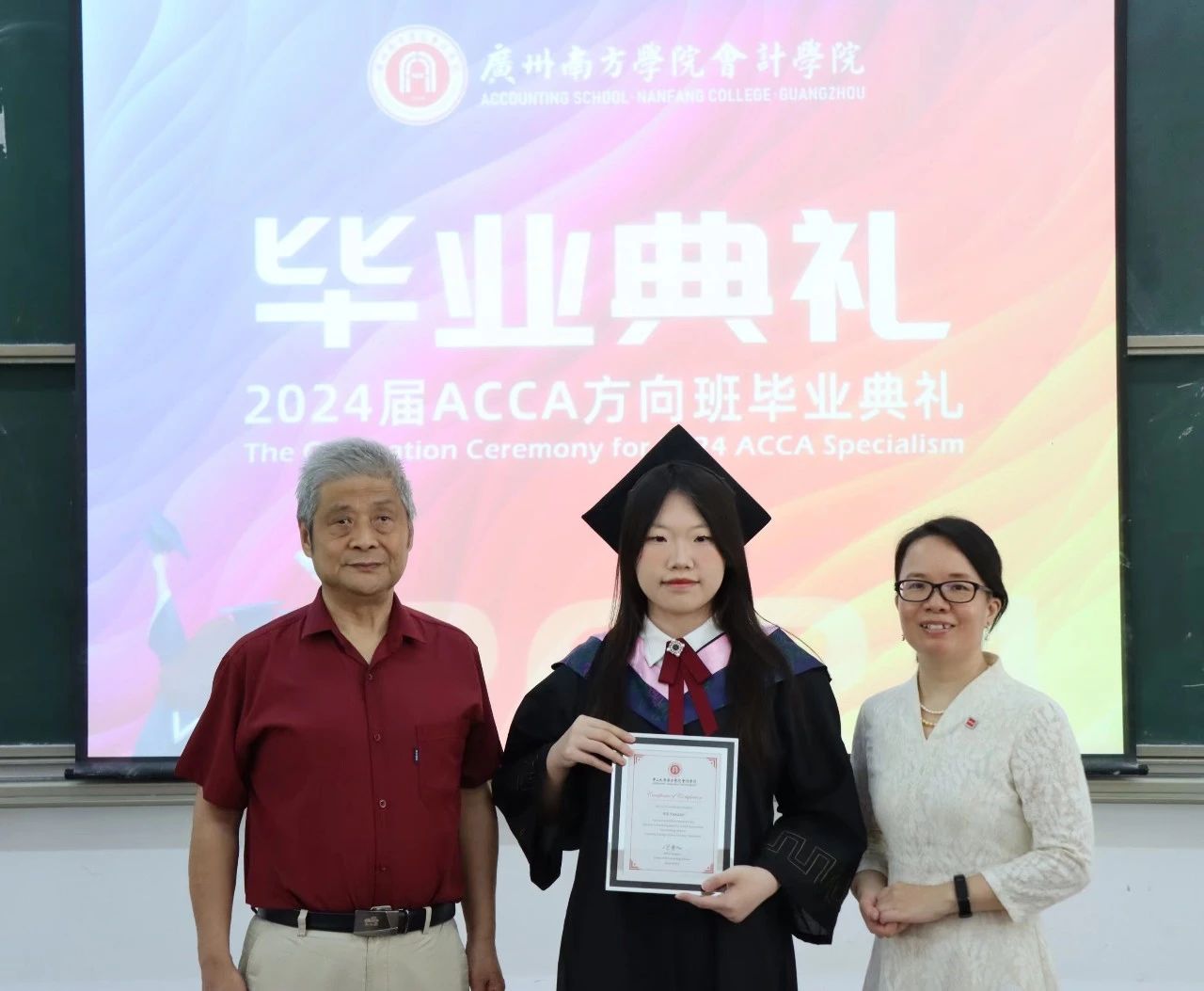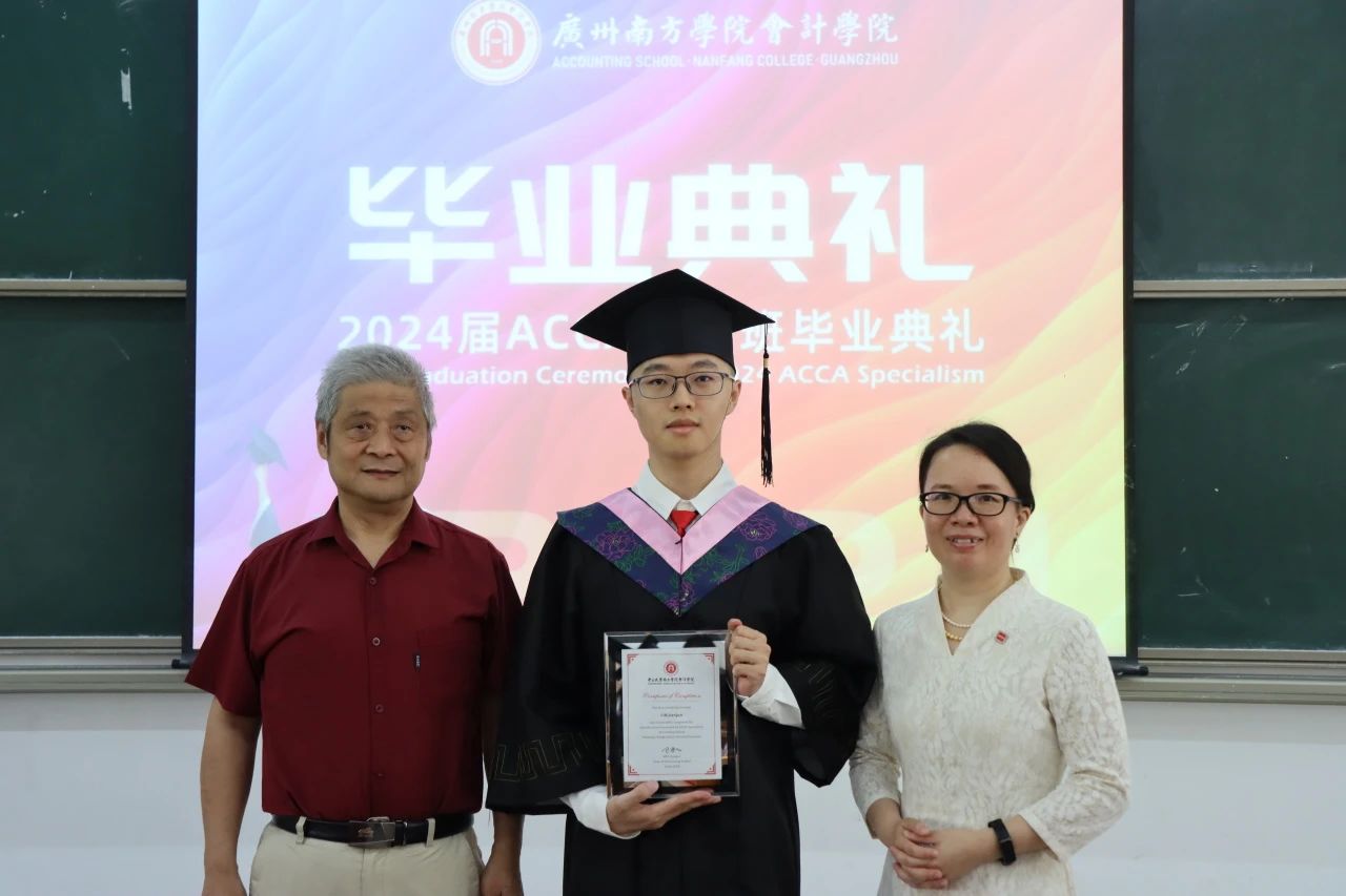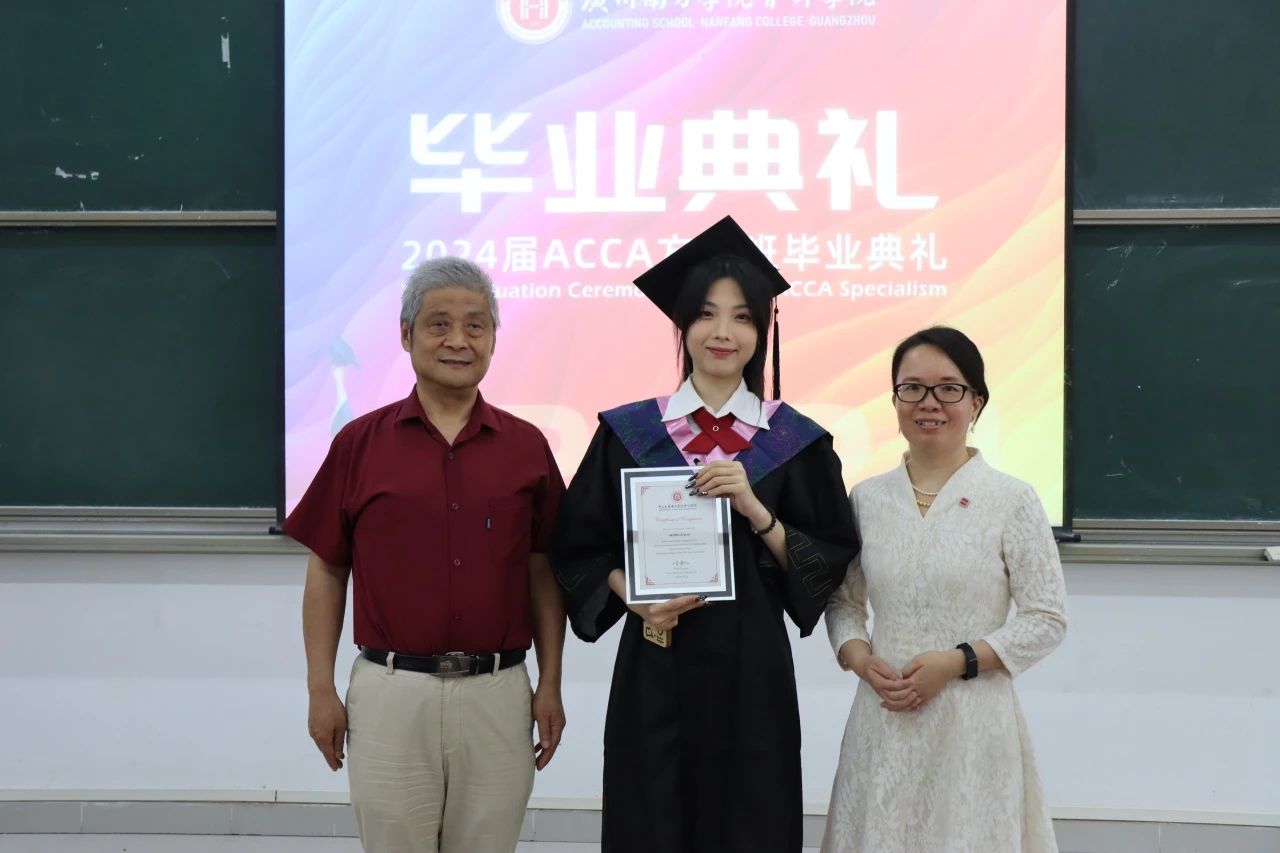 太阳成集团tyc7111执行院长卫建国、副院长董成杰、国际交流合作办公室主任曾涛、基础教研室主任陈宇桂、ACCA项目主任张怡辰、审计系主任何沁蔚、ACCA机考中心主任包经纬、ACCA方向班老师秦喆文、ACCA机考中心教师李凯乐、ACCA方向班辅导员严志华、ACCA专职教务老师李星晨等领导老师出席了本次活动,本次活动特别邀请了特许公认会计师公会(ACCA)华南区总监谭颖敏以及部分毕业生家长参会,一齐为2024届毕业生送上祝福。
