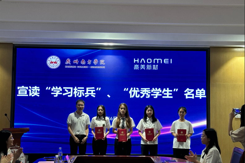 办公室主任李晓燕老师宣读“学习标兵”、“优秀学生”名单,并由广东豪美新材股份有限公司证券事务部经理张恩武颁发证书。