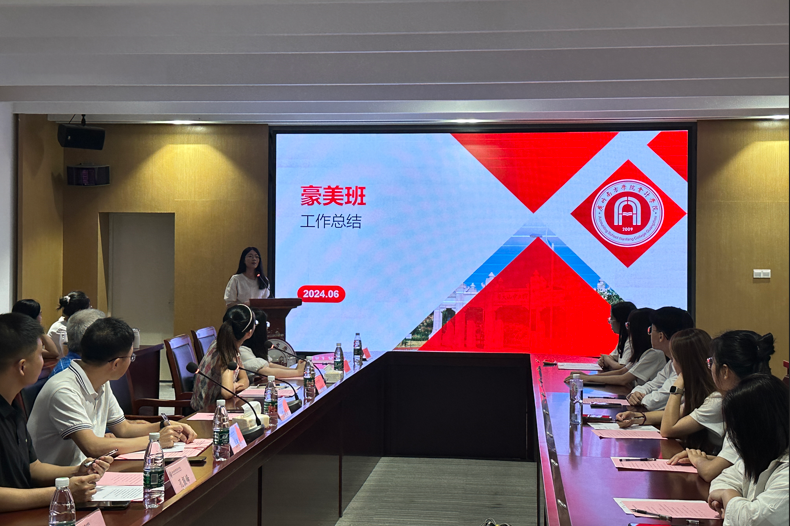 随后,“豪美班”班主任黄晓珊老师从班级成立情况、课程共建、实习基地共建以及就业指导等方面,全面总结了“豪美班”组建以来开展的各项联合培养活动以及取得的成效。