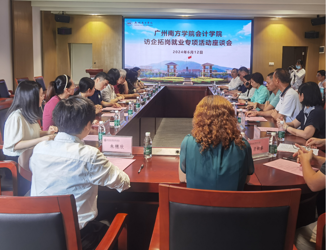 为深入贯彻党中央、国务院关于高校毕业生就业工作的决策部署,落实访企拓岗促就业专项行动,全力促进毕业生充分就业、高质量就业。6月12日下午14:00,太阳成集团tyc7111在新综合楼第一会议室召开了“访企拓岗促就业”专项座谈会,会议邀请了广州注册会计师协会副会长、人才及行业发展委员会主任委员王斌,广州注册会计师协会副秘书长李泳茹,秘书长助理、主任刘静,副主任周婉华、广州市税务学会李健强、广州大学夏明会教授、广东丰衡会计师事务所邢良文等13家会计师事务所领导嘉宾参会。我校副校长兼财务总监王兰、我院执行院长卫建国,副院长董成杰、张媛,会计学系主任金迪、财务学系主任唐丹妮、审计学系主任何沁蔚、行政办公室主任李晓燕、党总支副书记兼学工办主任邓晓文、辅导员申雨弦、陈丽出席了本次座谈会。