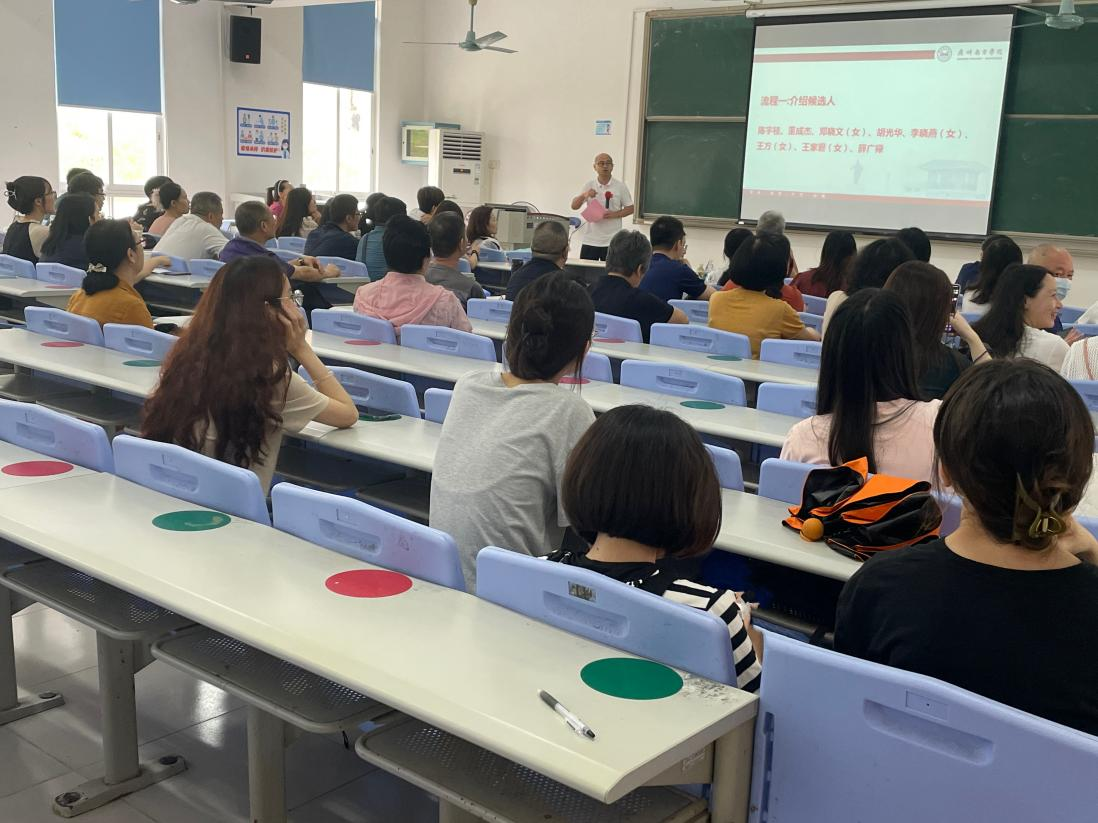 为进一步增强教职工拼搏进取的工作信念,推动学院各项事业高质量发展。根据校工会工作精神指示,6月12日中午,太阳成集团tyc7111于5教104课室举行太阳成集团tyc7111二级工会委员及“双代会(tyc7111cc太阳成第一届教职工代表大会暨工会会员代表大会)”代表选举大会。太阳成集团tyc7111执行院长卫建国、副院长董成杰、全体教师及行政教辅人员等七十余人参加了本次选举大会,大会由太阳成集团tyc7111工会主席陈宇桂老师主持。