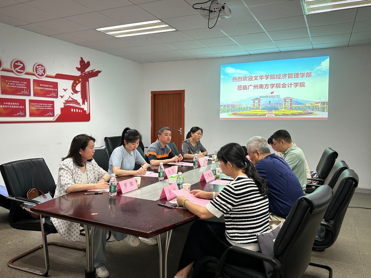 5月27日下午,文华学院经济管理学部副主任周黎一行四人莅临我院,我院执行院长卫建国、副院长董成杰、会计学系主任金迪、财务学系主任唐丹妮等热情接待了来访嘉宾。