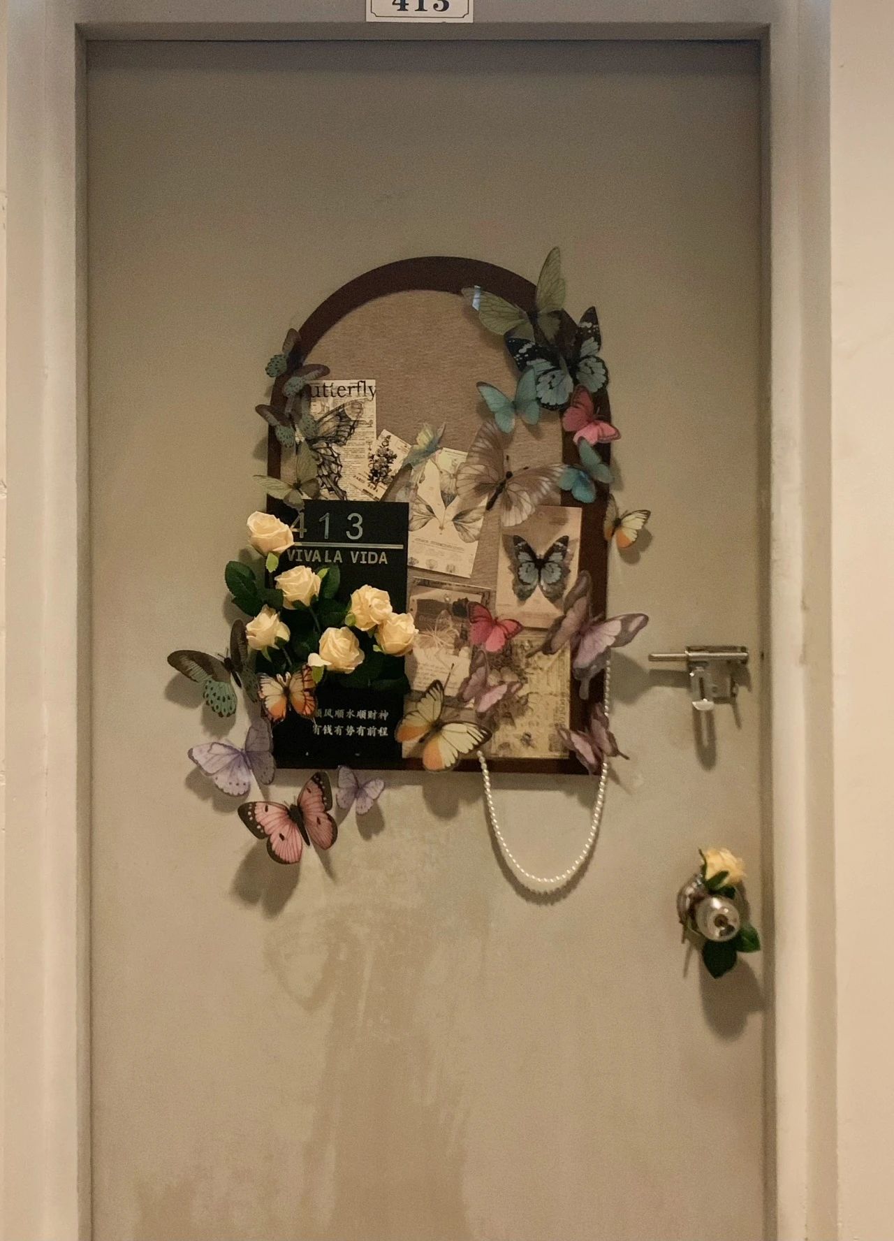 装点美丽空间,营造舒适氛围,宿舍的小伙伴们也携手合作,精心装饰宿舍的大门,在创意的碰撞和融合中,感受到了创作的乐趣和集体的智慧与魅力,大家用自己的巧手打造了共同的温馨家园。