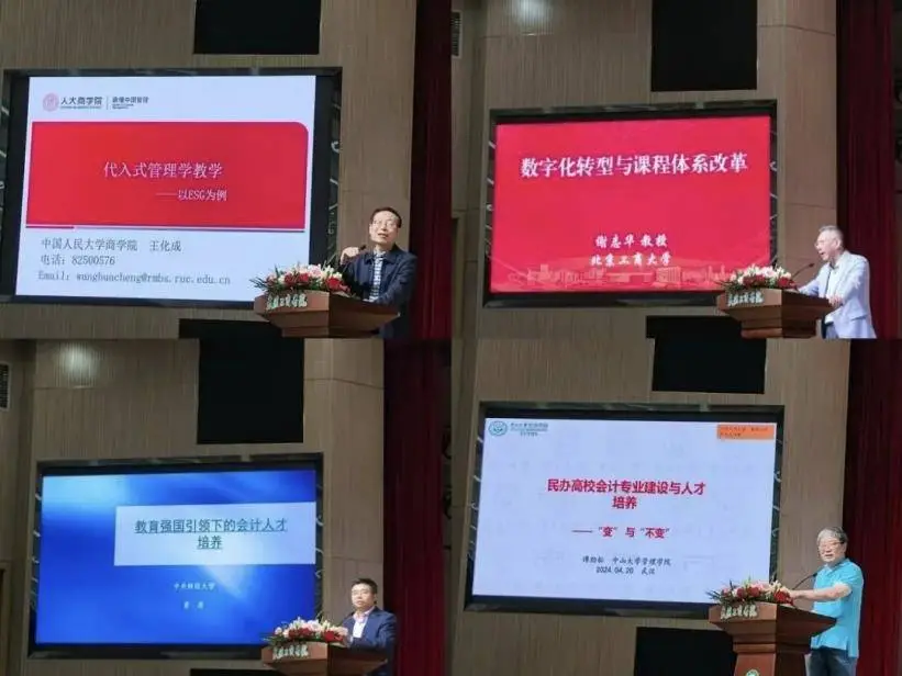 会议以“民办高校会计教育数智化与应用型人才培养”为主题,设置了主题报告和分论坛两个环节。中国人民大学王化成教授、北京工商大学谢志华教授、中央财经大学袁淳教授、中山大学谭劲松教授、厦门网中网软件有限公司副总裁徐建宁等知名专家分别作主题报告,为民办高校会计教育数智化发展与应用型人才培养提出了诸多真知灼见。